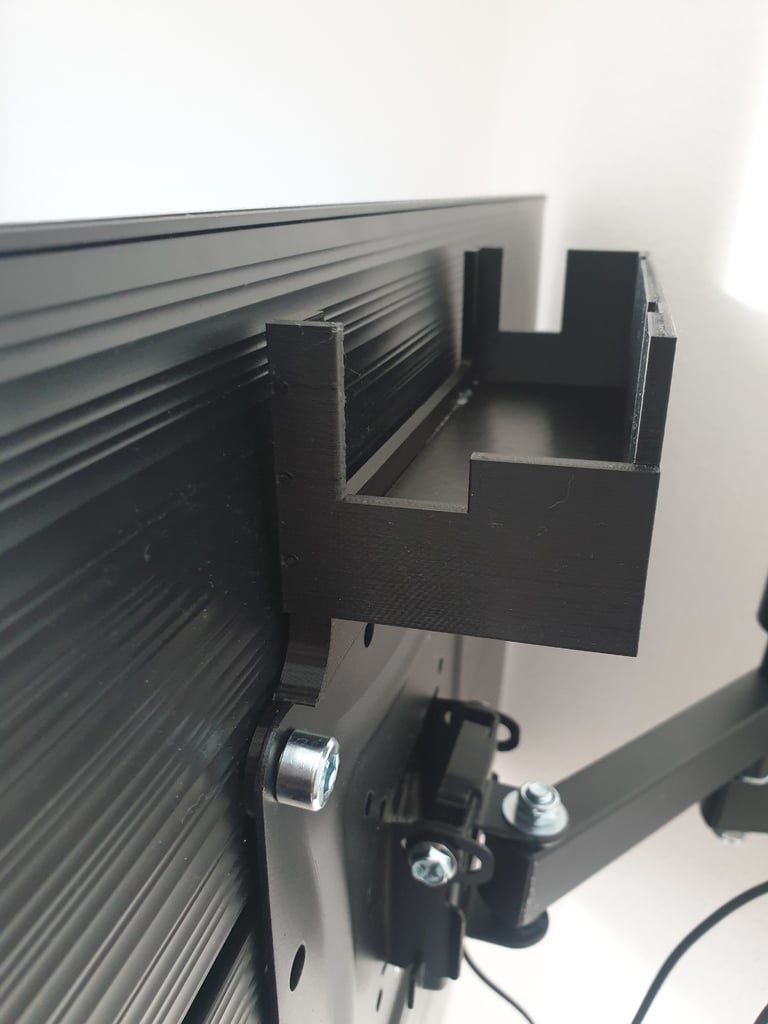 - Enkel installation eftersom hållaren fästs mellan TV:n och VESA-väggfästet.