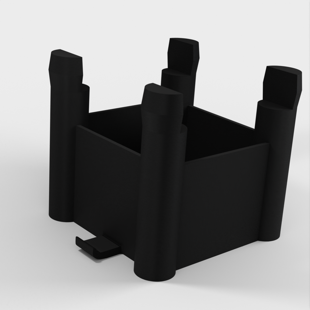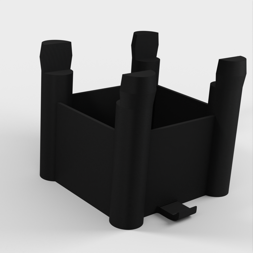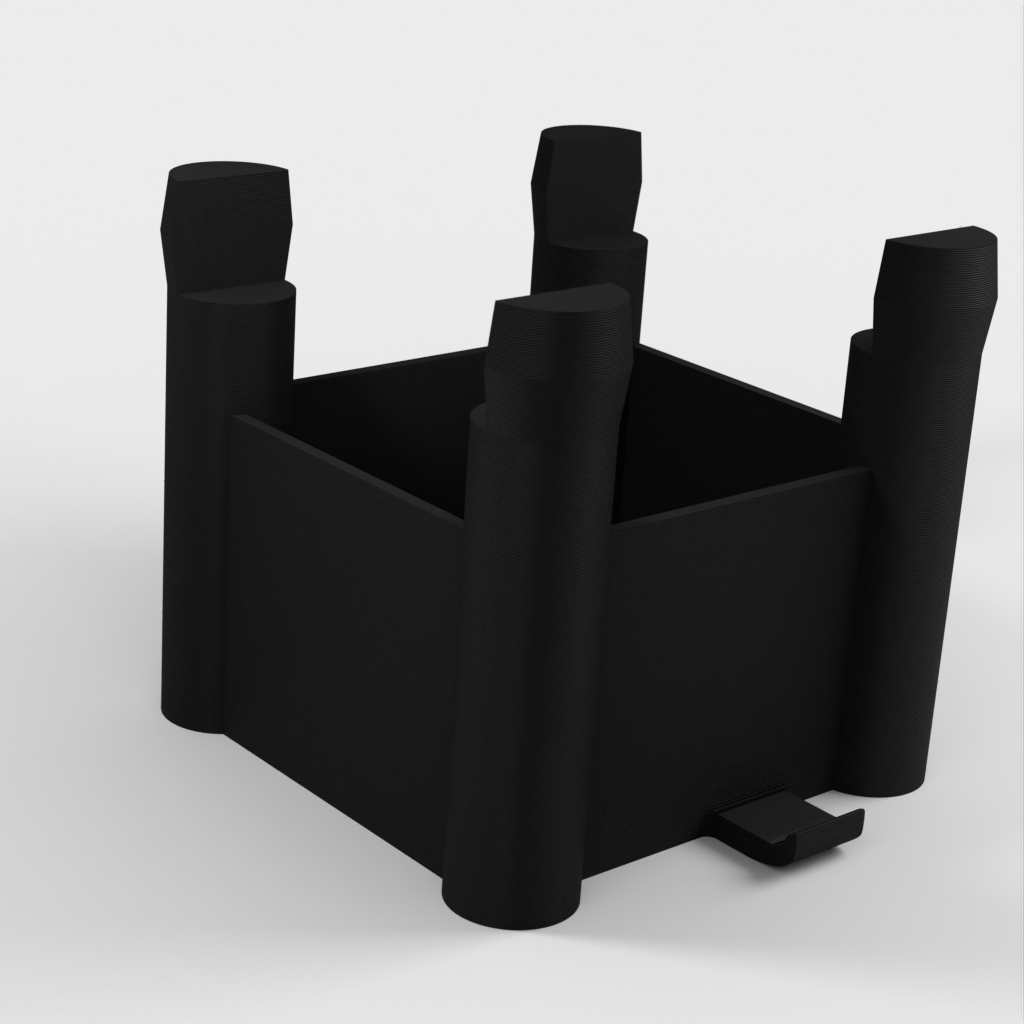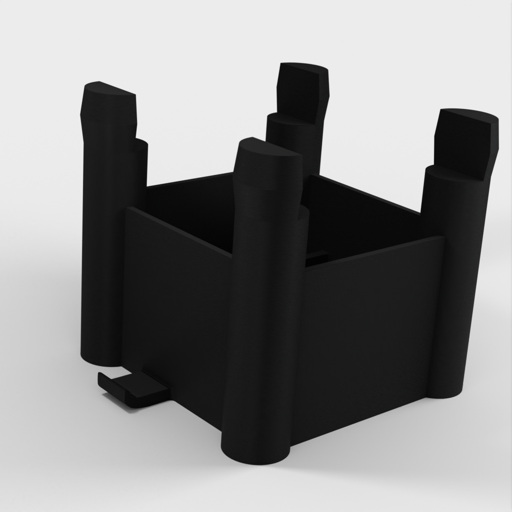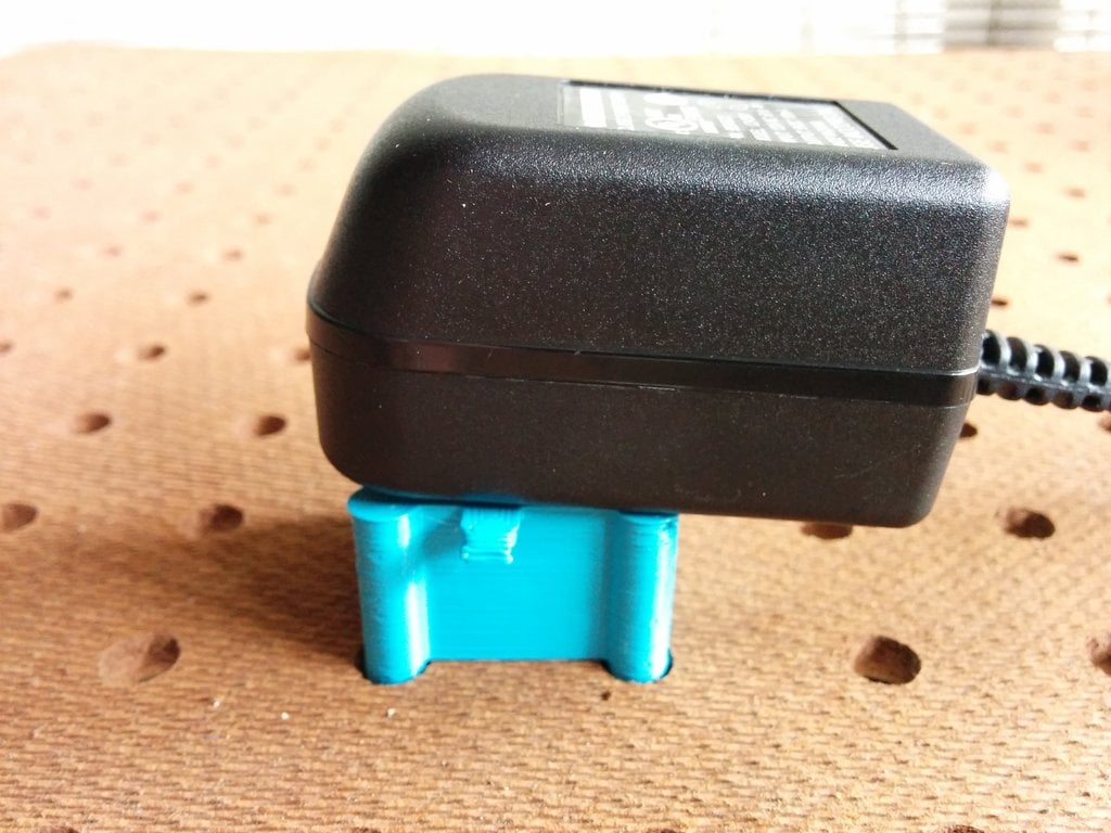 En praktisk hållare för nätadapter som passar 9/32 tums pegboard. Koppla in strömadaptrarna direkt i denna plasthållare och sätt sedan in hållaren på pinnbrädan.