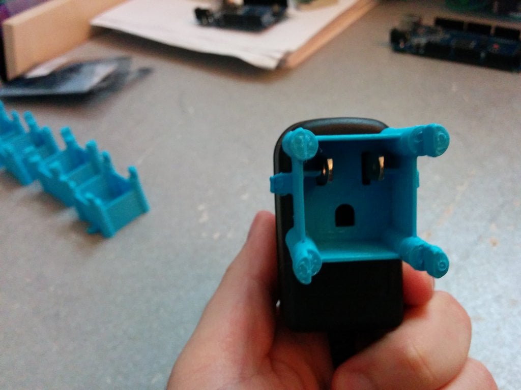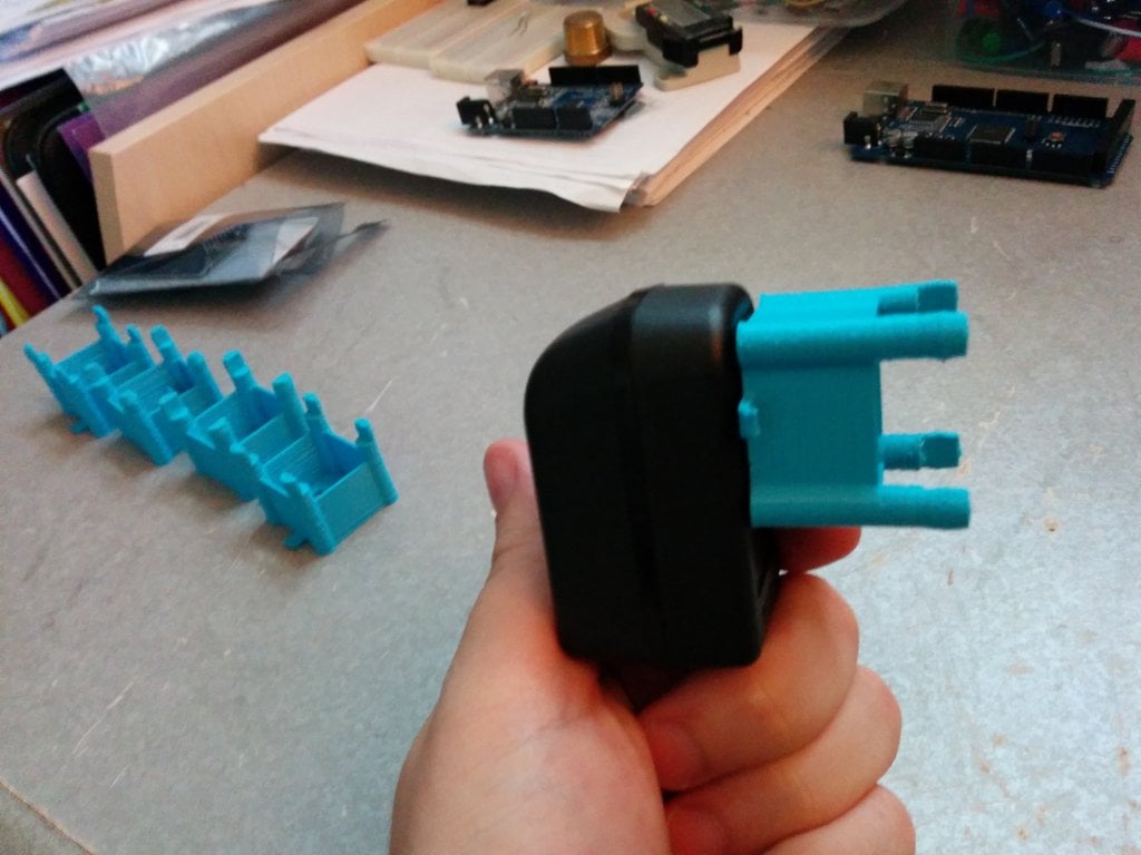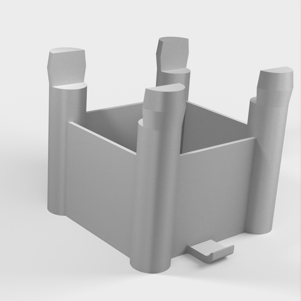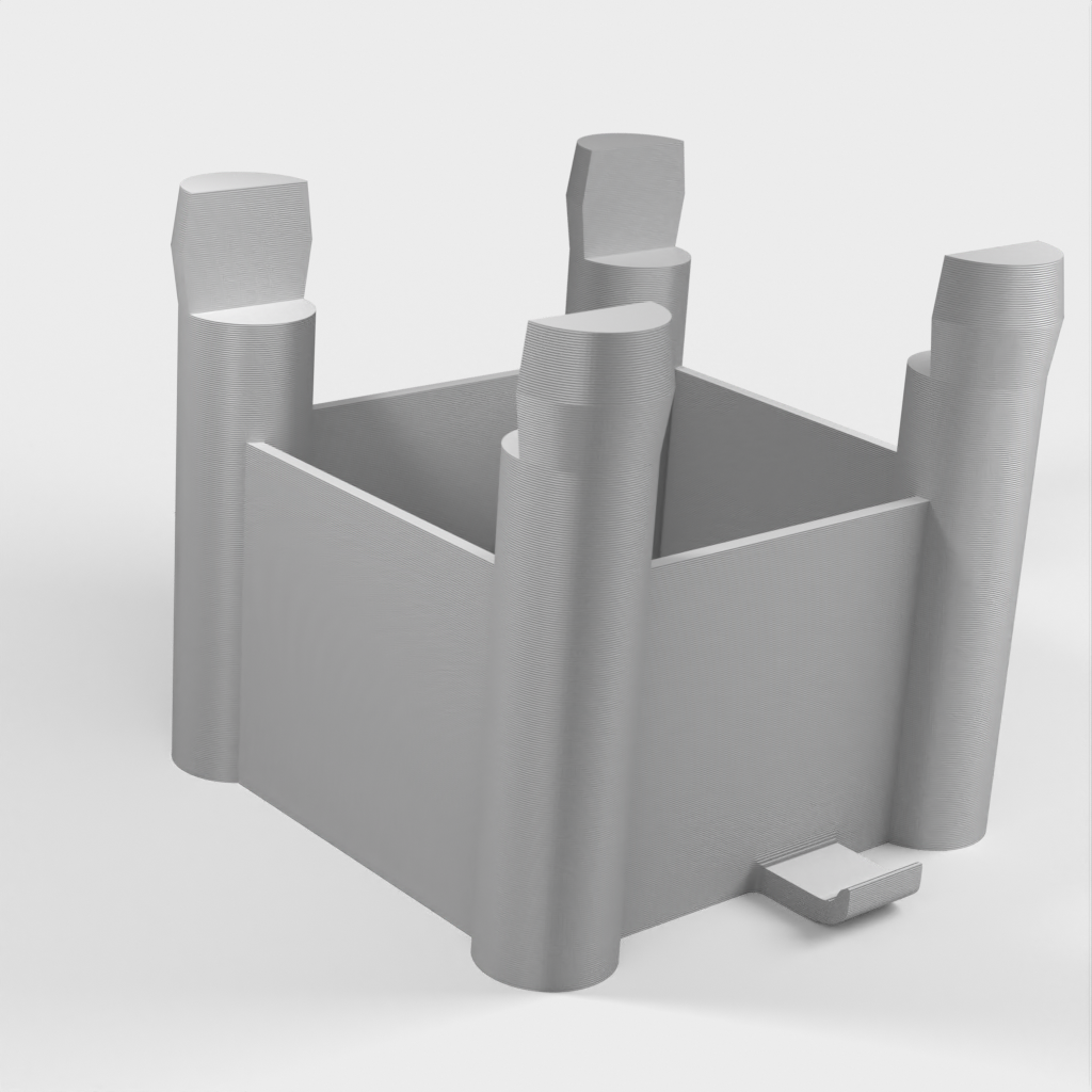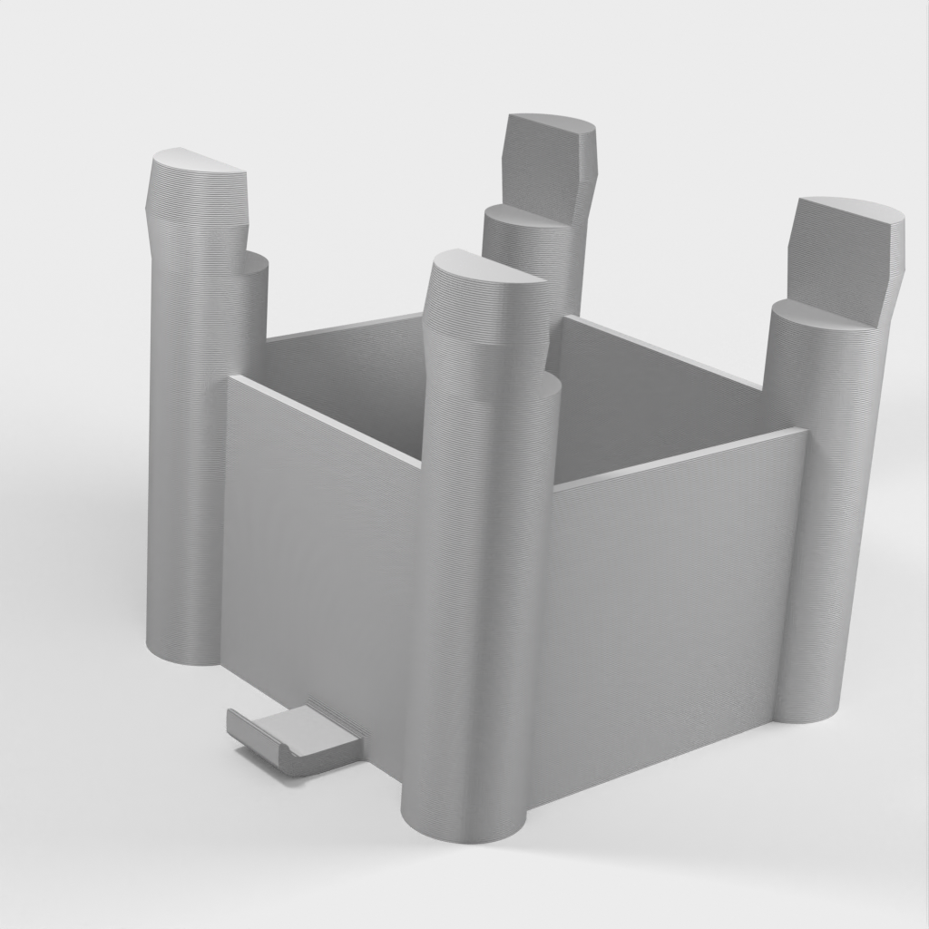 En praktisk hållare för nätadapter som passar 9/32 tums pegboard. Koppla in strömadaptrarna direkt i denna plasthållare och sätt sedan in hållaren på pinnbrädan.