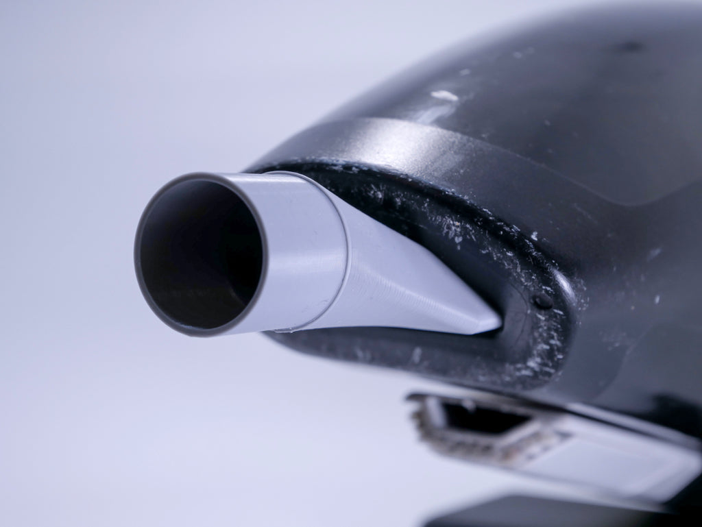 Adapter för en Ryobi ONE+ sladdlös dammsugare så att den kan använda slangen från Ryobi 18V ONE+ kompressor för att nå svåråtkomliga ställen.
