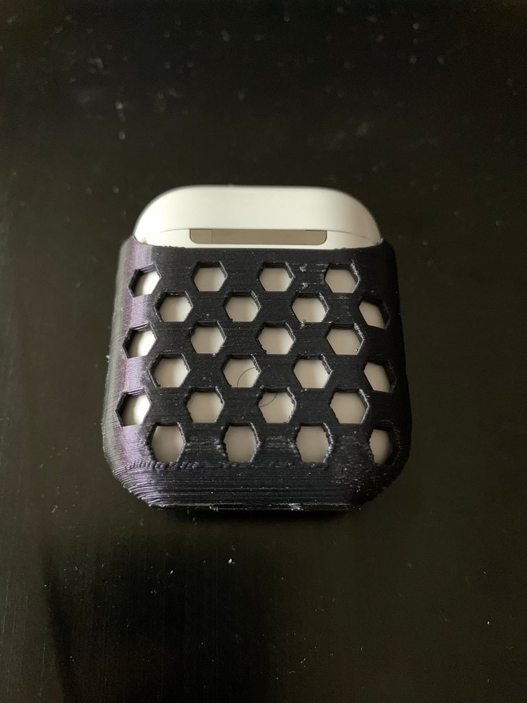 Redigera. Bakre sexkantshål som matchar Airpods bakåtknapp. Den första versionen trycker på knappen och återställer den.