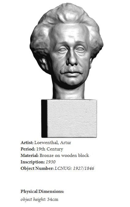 En 3D-skannad byst av Albert Einstein, tidigare på Usher Gallery och The Collection i Lincoln, Storbritannien. Bysten är en exakt reproduktion av den ursprungliga bronsskulpturen, skapad av Artur Loewenthal 1930.