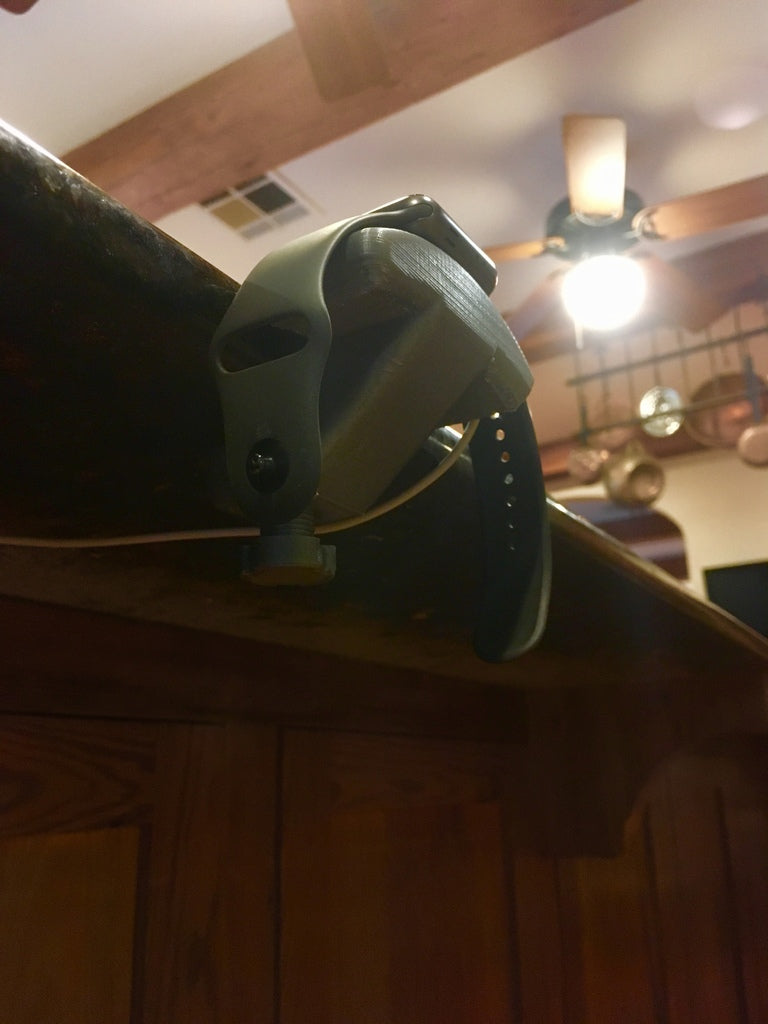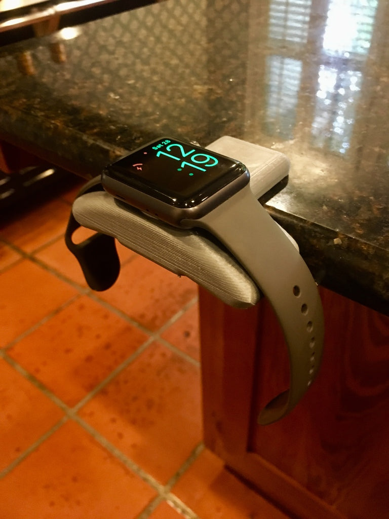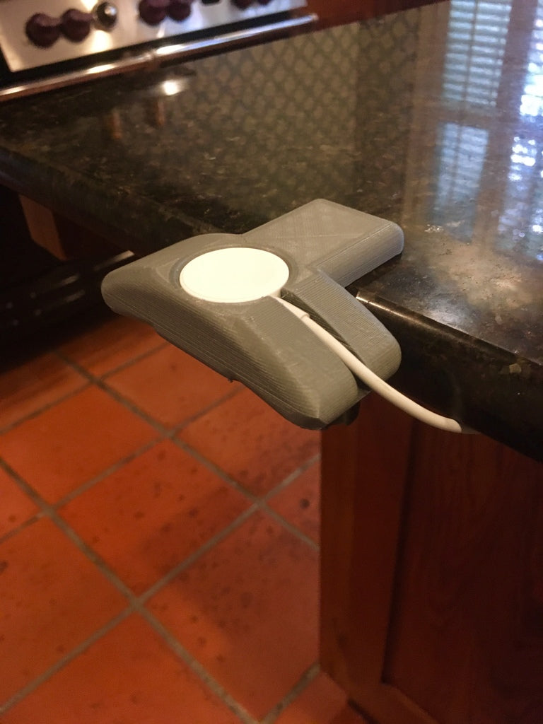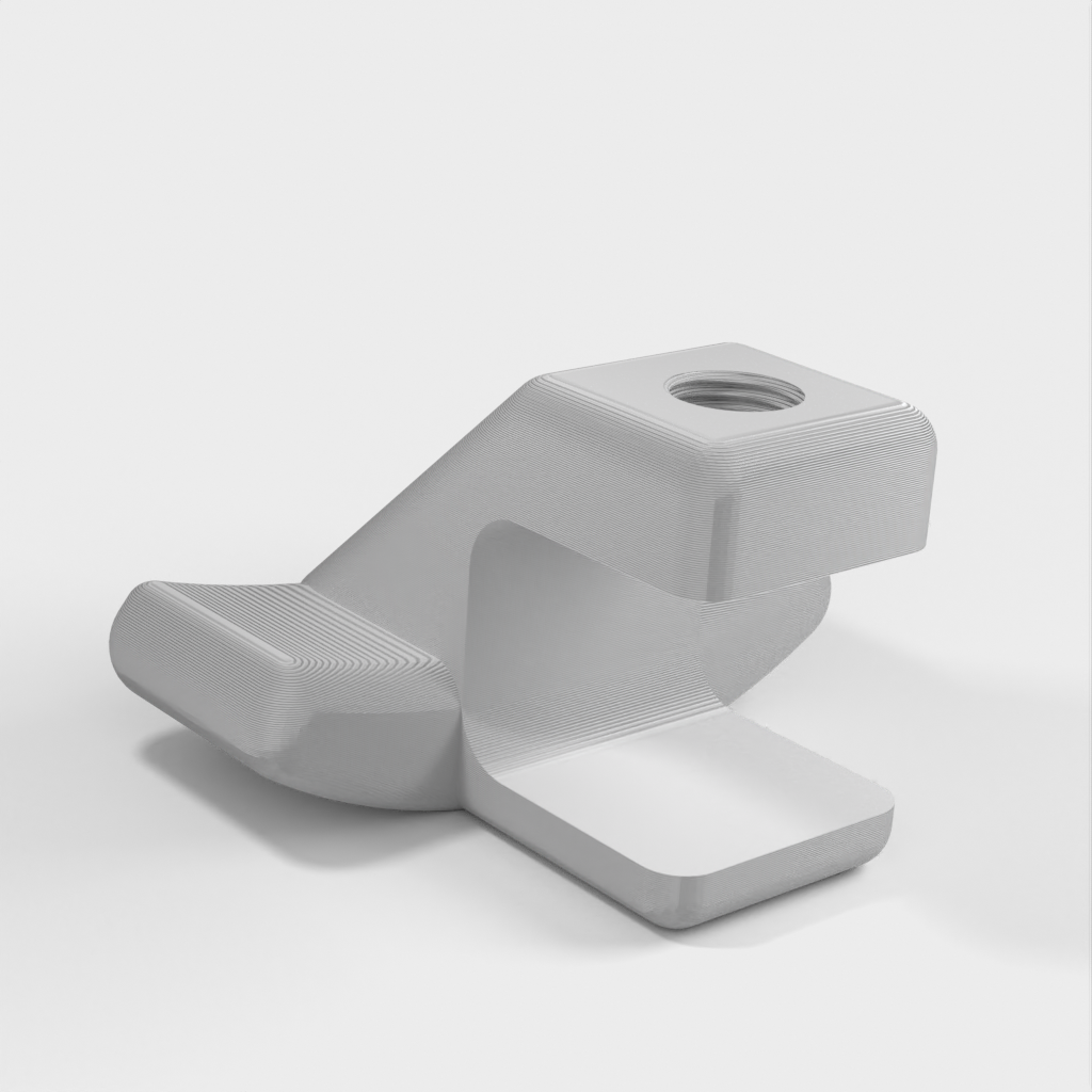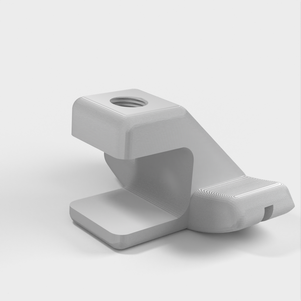 En enkel laddningsdocka för Apple Watch som kan klämmas fast på de flesta bord. Fungerar med alla Apple Watches. Det finns en kanal för kabeln så att den kan ledas ut på baksidan under klockan.