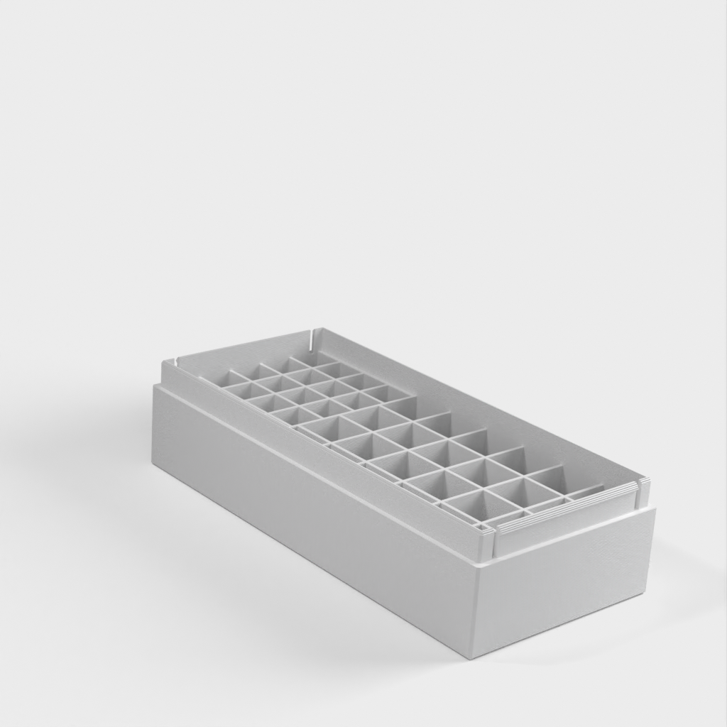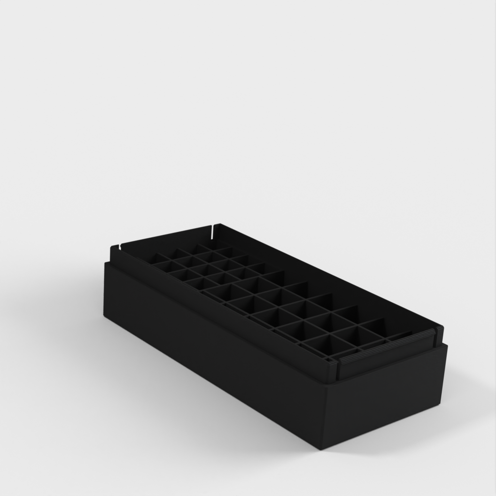 Batterilåda med plats för 24 AA och 20 AAA batterier. Uppladdningsbara batterier är något tjockare än icke-uppladdningsbara batterier, detta fodral rymmer lätt båda typerna.
