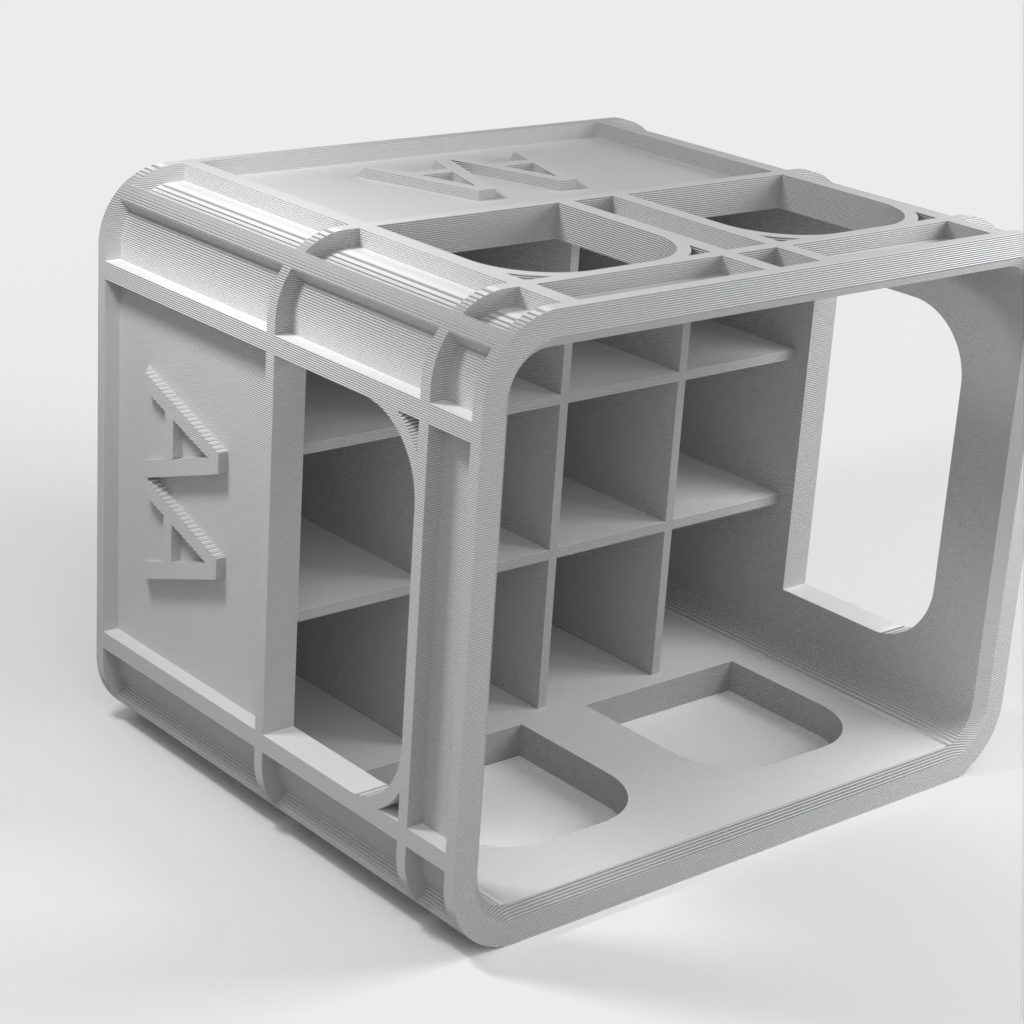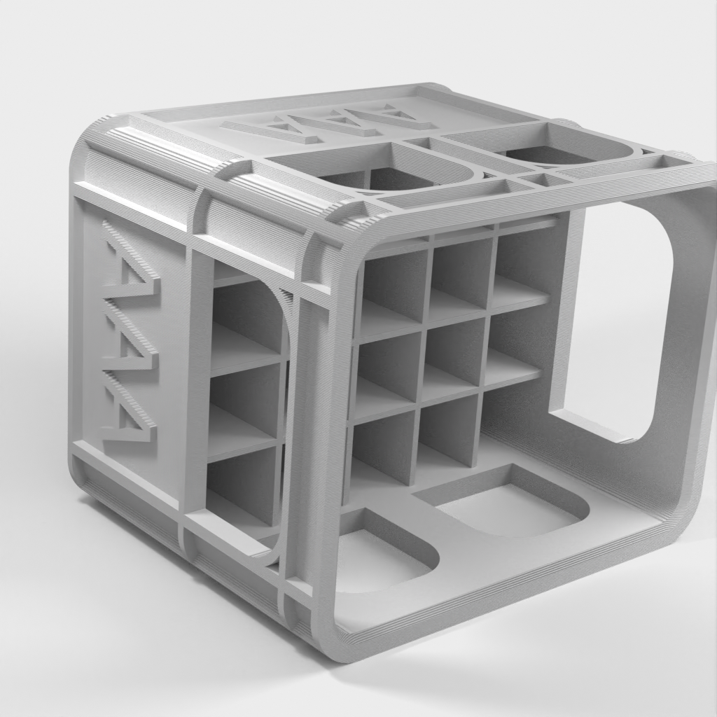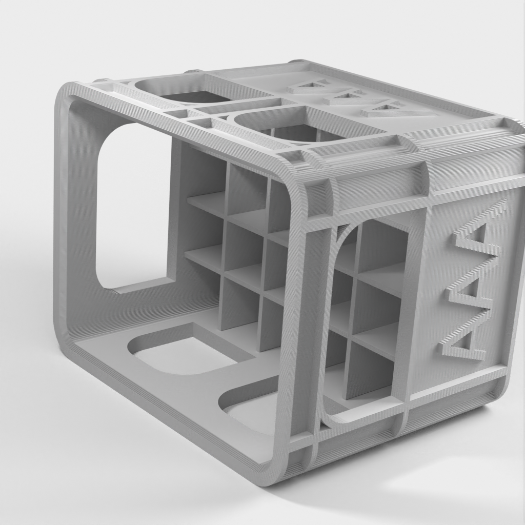 Detta är ett stapelbart batterifodral, speciellt utformat för att organisera dina batterier med större effektivitet. Den unika designen gör att dessa batterilådor kan staplas utan att det krävs någon extra bottenplatta. Denna modell är lätt att använda och håller effektivt dina batterier. Varje batterifodral är tillverkad av PLA-material som är tillräckligt tåligt för att hålla dina batterier säkra.