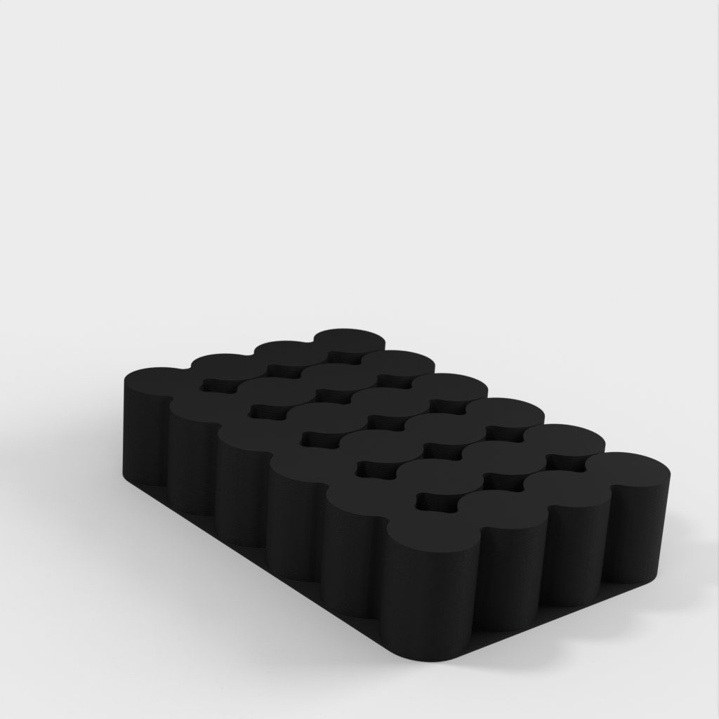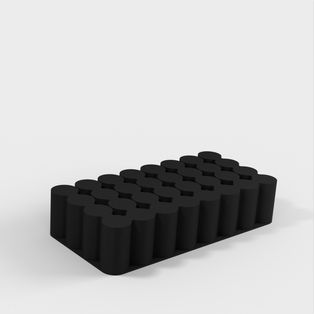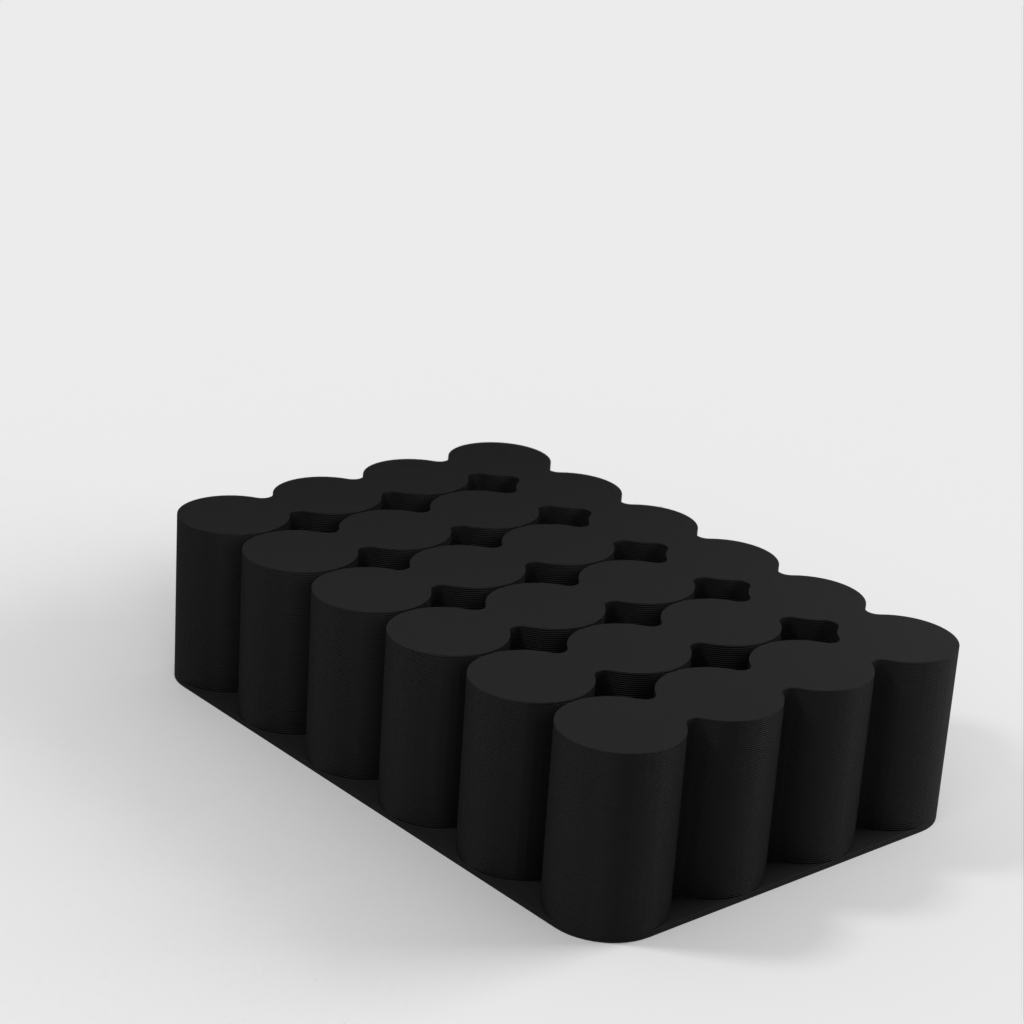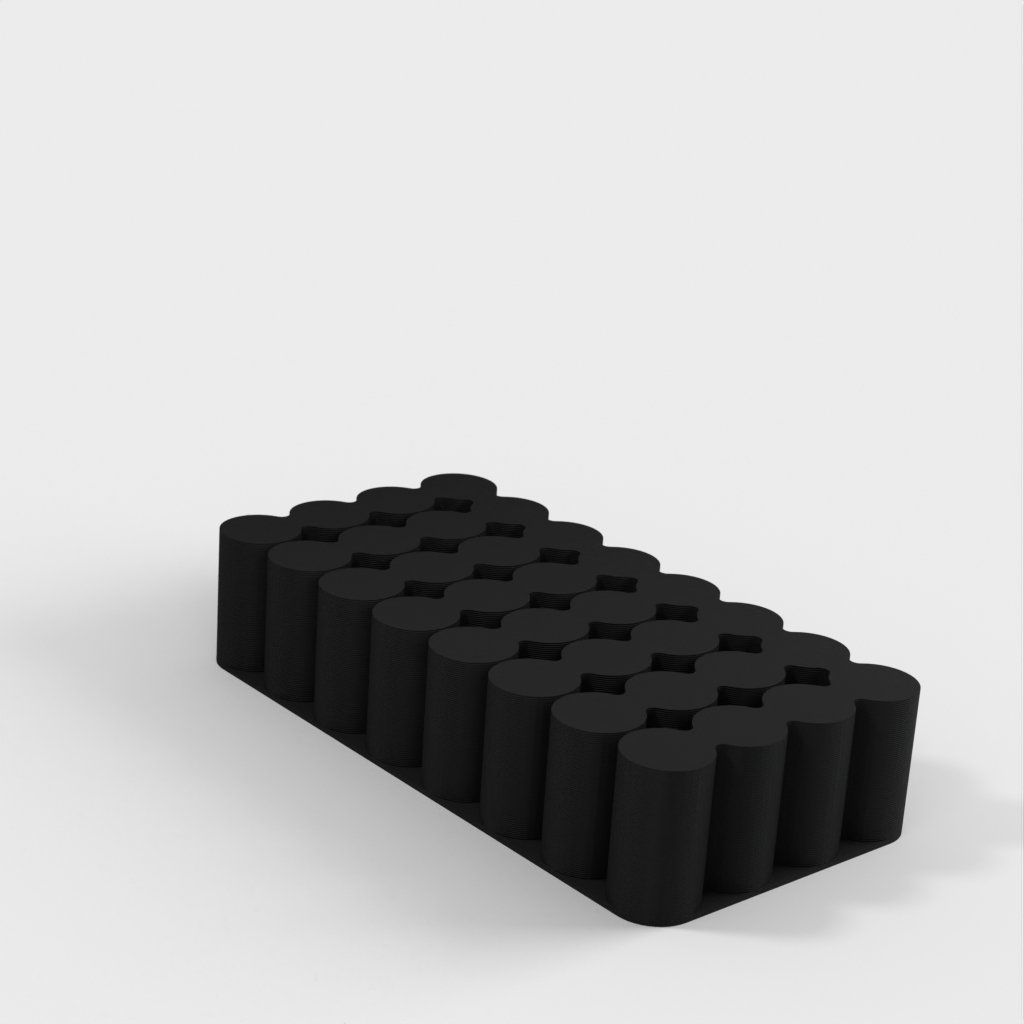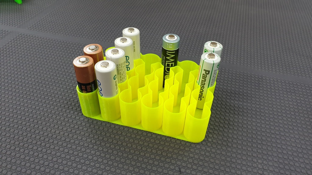 Håll koll på dina batterier med denna batterihållare för AA, AAA, 18650 och 9V batterier. AA-behållaren rymmer 24 batterier, AAA för 32, 18650 för 24 och 9V för 10. Du kan skriva ut dem i vilket material som helst, men i det här fallet är de tryckta i PLA. Skulle du behöva en hållare för olika storlekar av batterier eller med fler platser, vänligen lämna en kommentar så laddas en ny version upp.