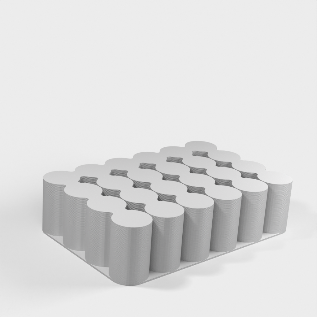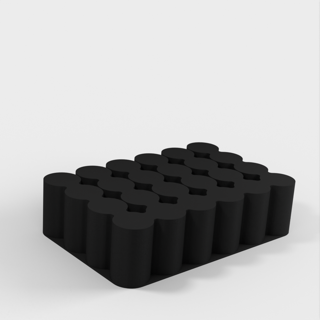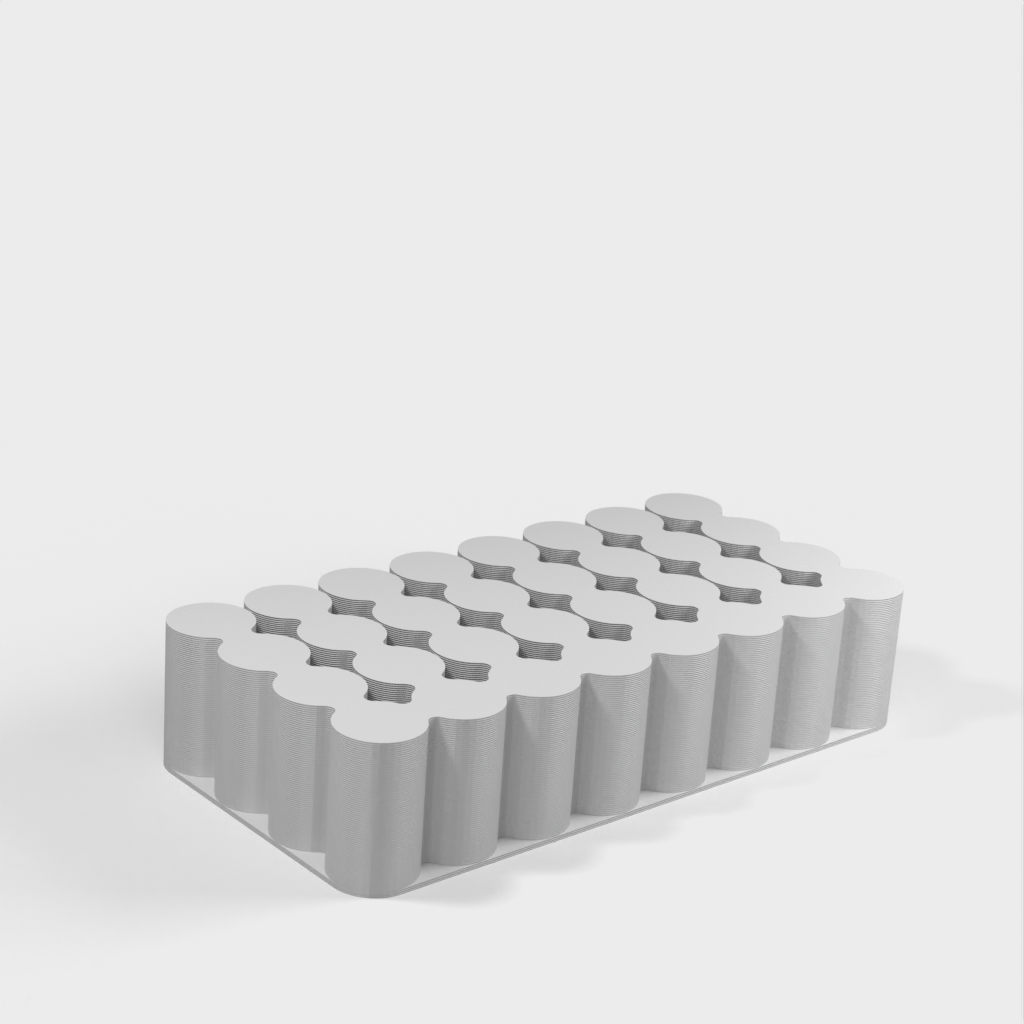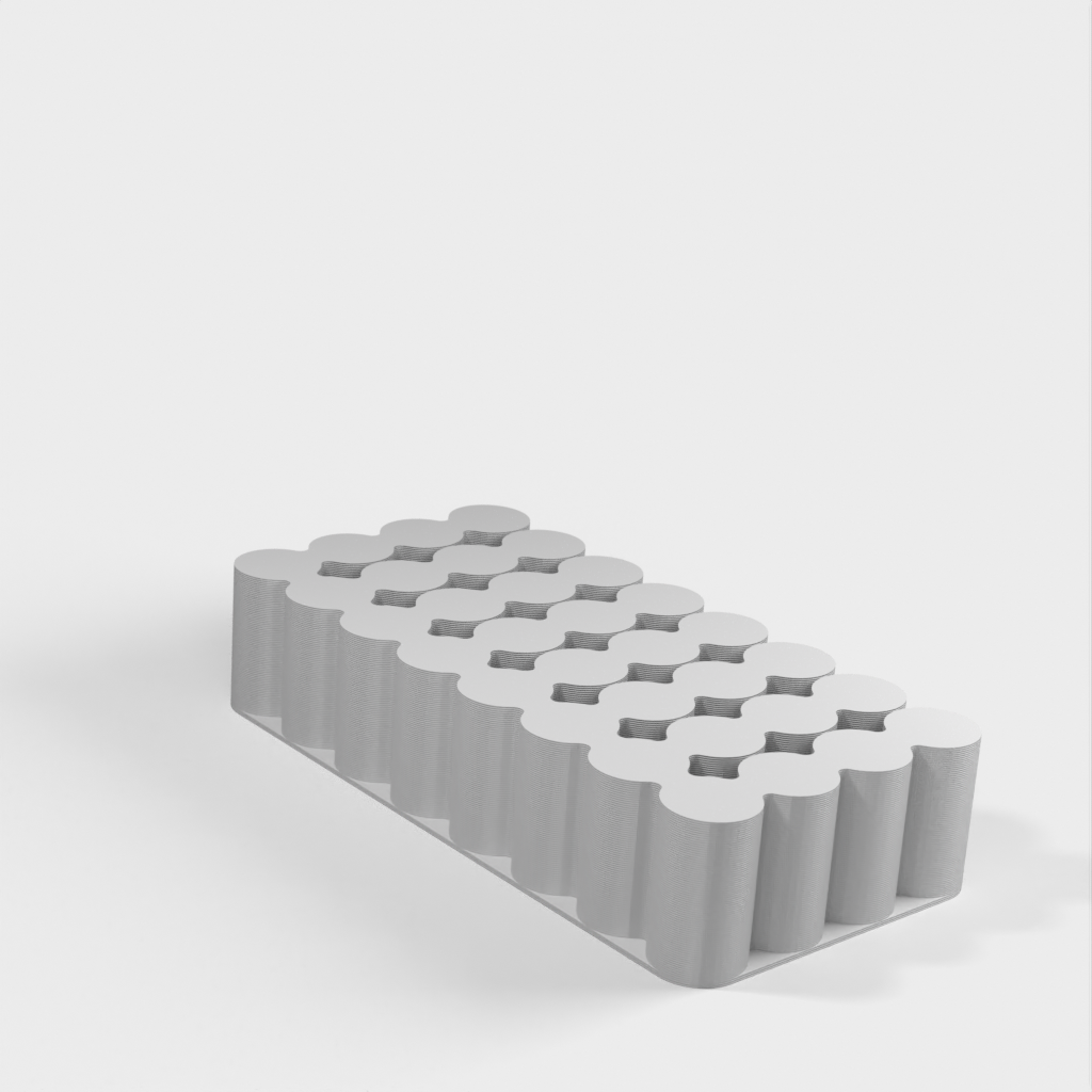 Håll koll på dina batterier med denna batterihållare för AA, AAA, 18650 och 9V batterier. AA-behållaren rymmer 24 batterier, AAA för 32, 18650 för 24 och 9V för 10. Du kan skriva ut dem i vilket material som helst, men i det här fallet är de tryckta i PLA. Skulle du behöva en hållare för olika storlekar av batterier eller med fler platser, vänligen lämna en kommentar så laddas en ny version upp.