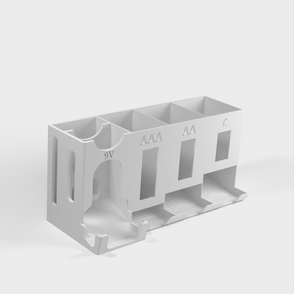 Förvara enkelt dina AA, AAA, C & 9 volts batterier i denna hållare.