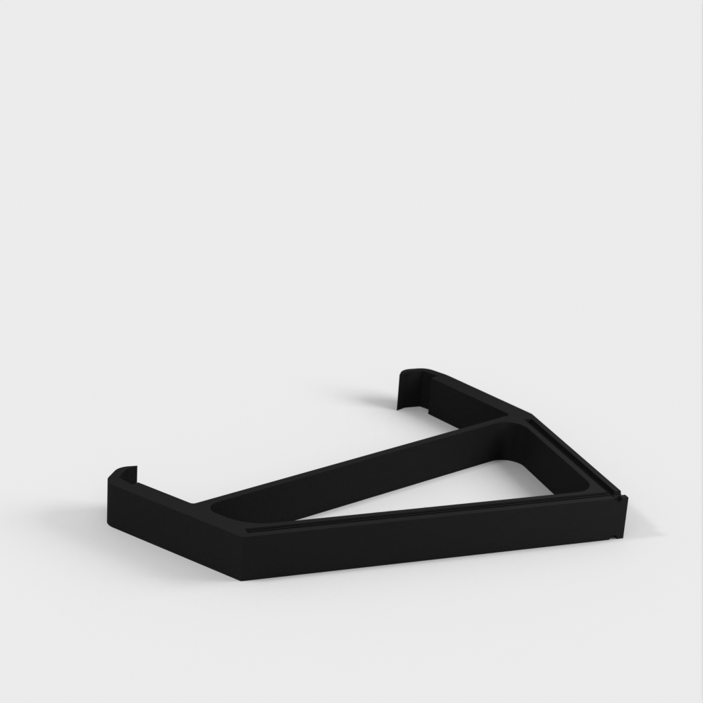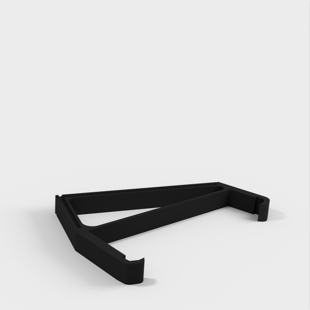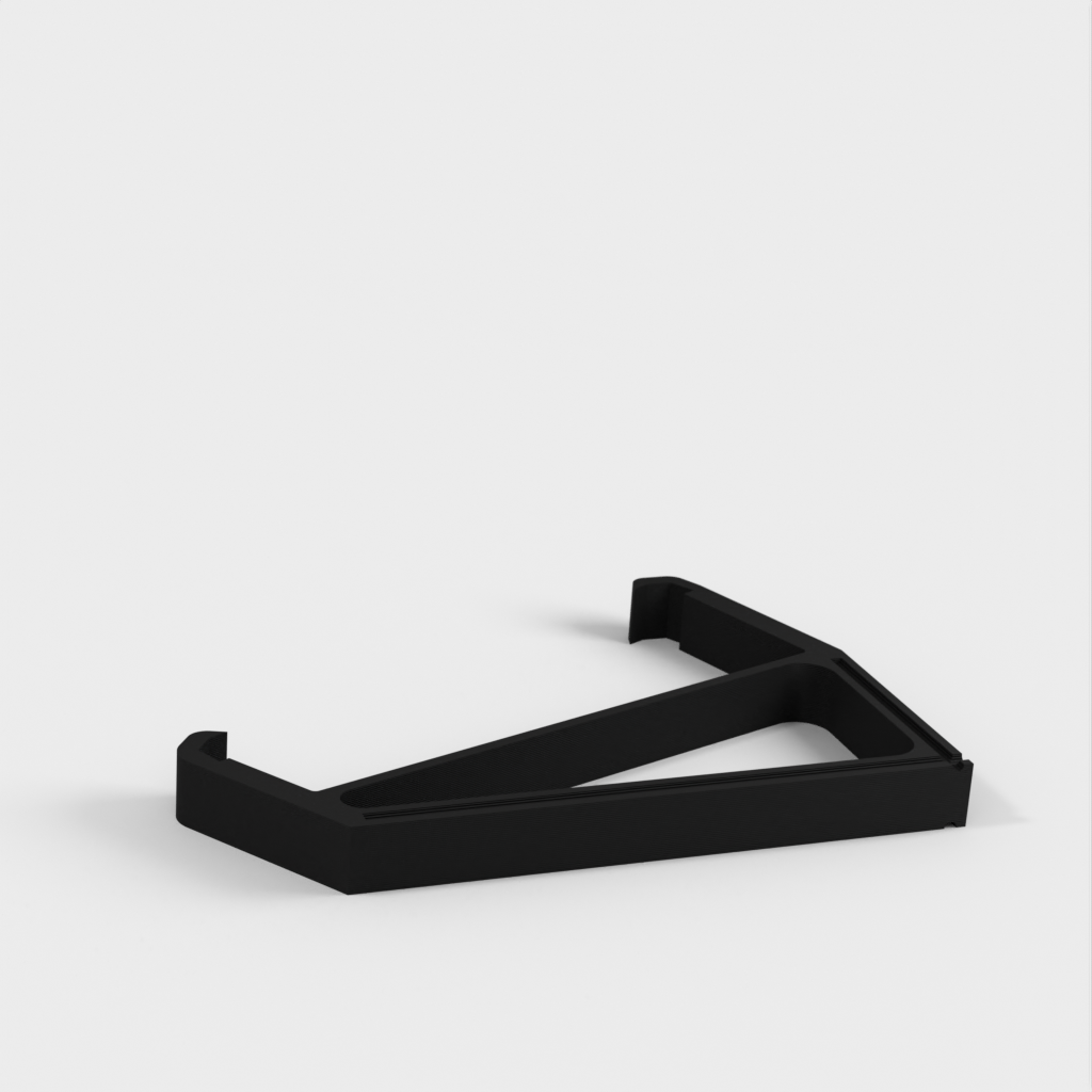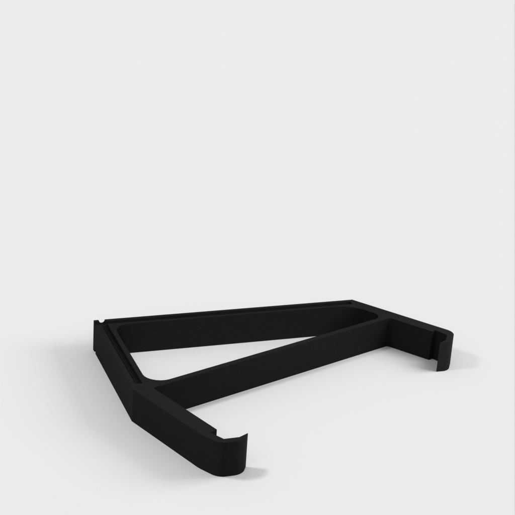 Detta Blackmagic ATEM Mini/Mini Pro-stativ lyfter växlaren från ytan för bättre värmehantering. När du kör ATEM Mini-Pro kontinuerligt bidrar stativets vinkelförändring och höjd till en betydande förbättring av kylningen. Denna version riktar in och rätar ut de översta "nyckelhålen" och ger tillräckligt med utrymme under ATEM för att fästena kan glida på, även med monteringsdynorna monterade.