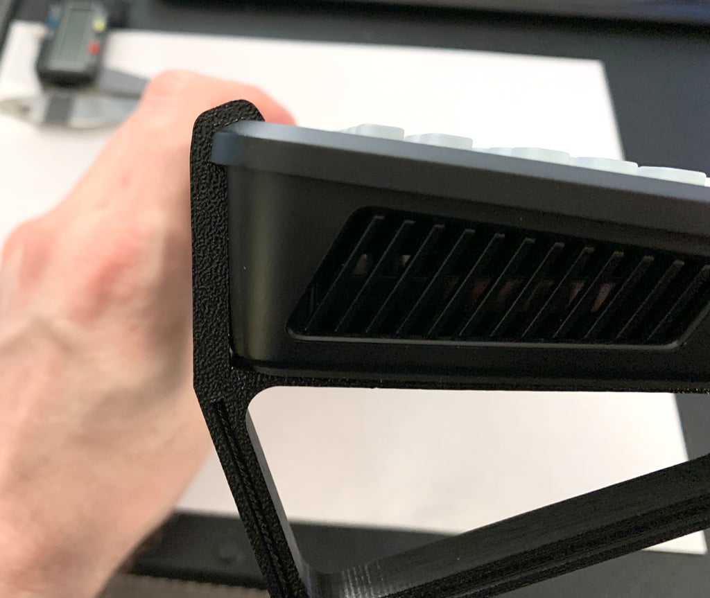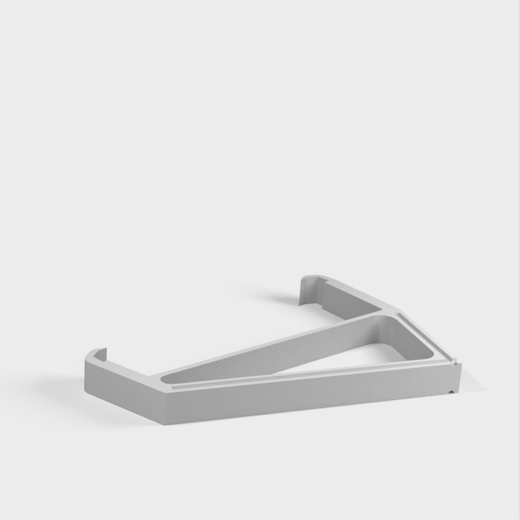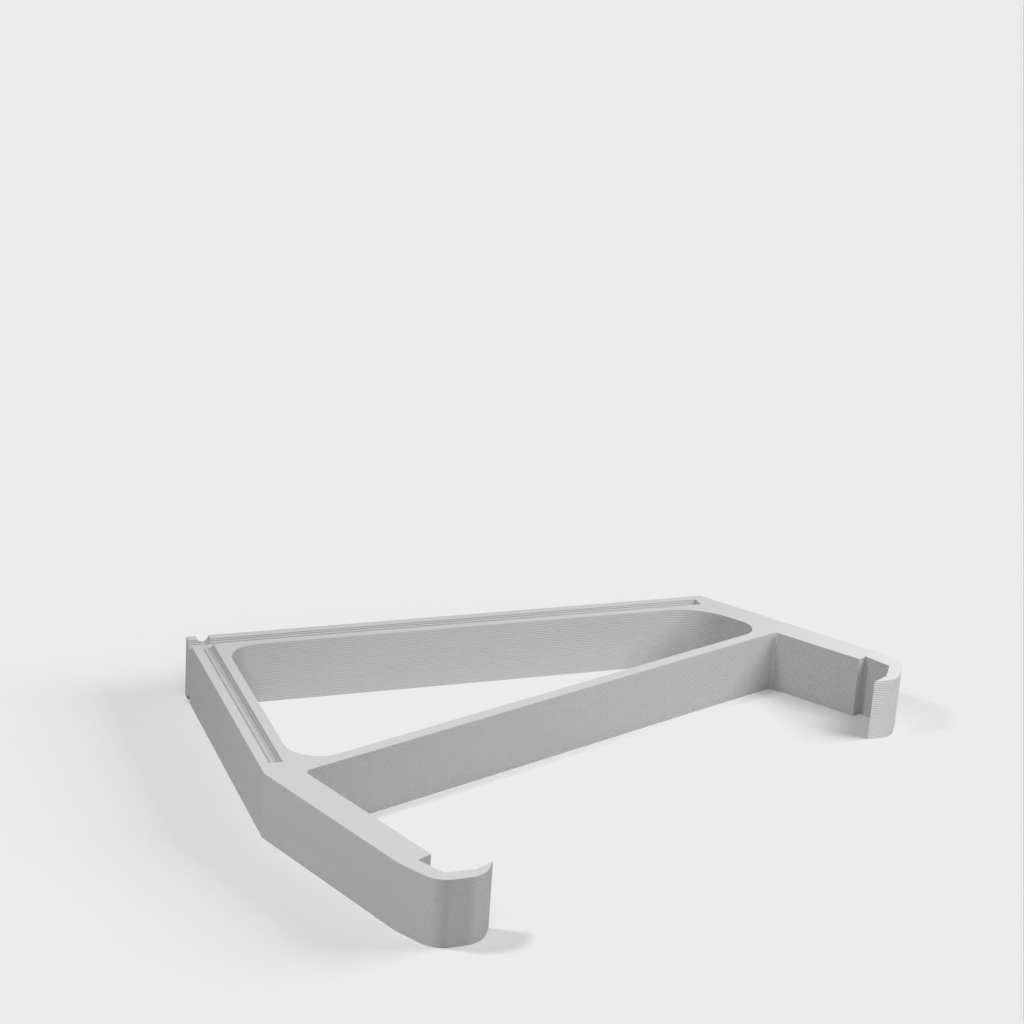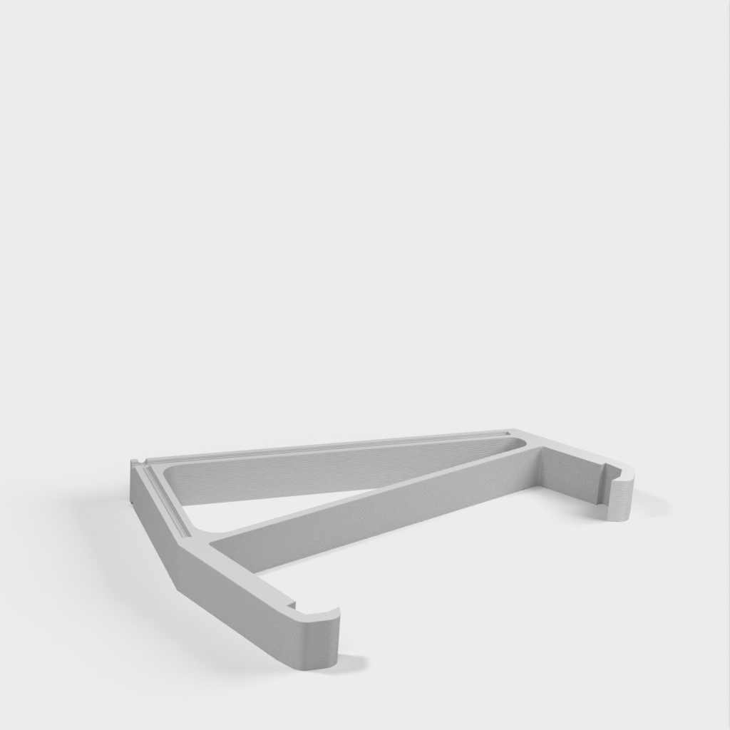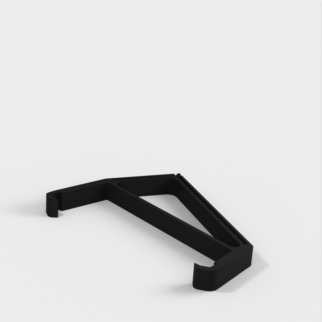 Detta Blackmagic ATEM Mini/Mini Pro-stativ lyfter växlaren från ytan för bättre värmehantering. När du kör ATEM Mini-Pro kontinuerligt bidrar stativets vinkelförändring och höjd till en betydande förbättring av kylningen. Denna version riktar in och rätar ut de översta "nyckelhålen" och ger tillräckligt med utrymme under ATEM för att fästena kan glida på, även med monteringsdynorna monterade.