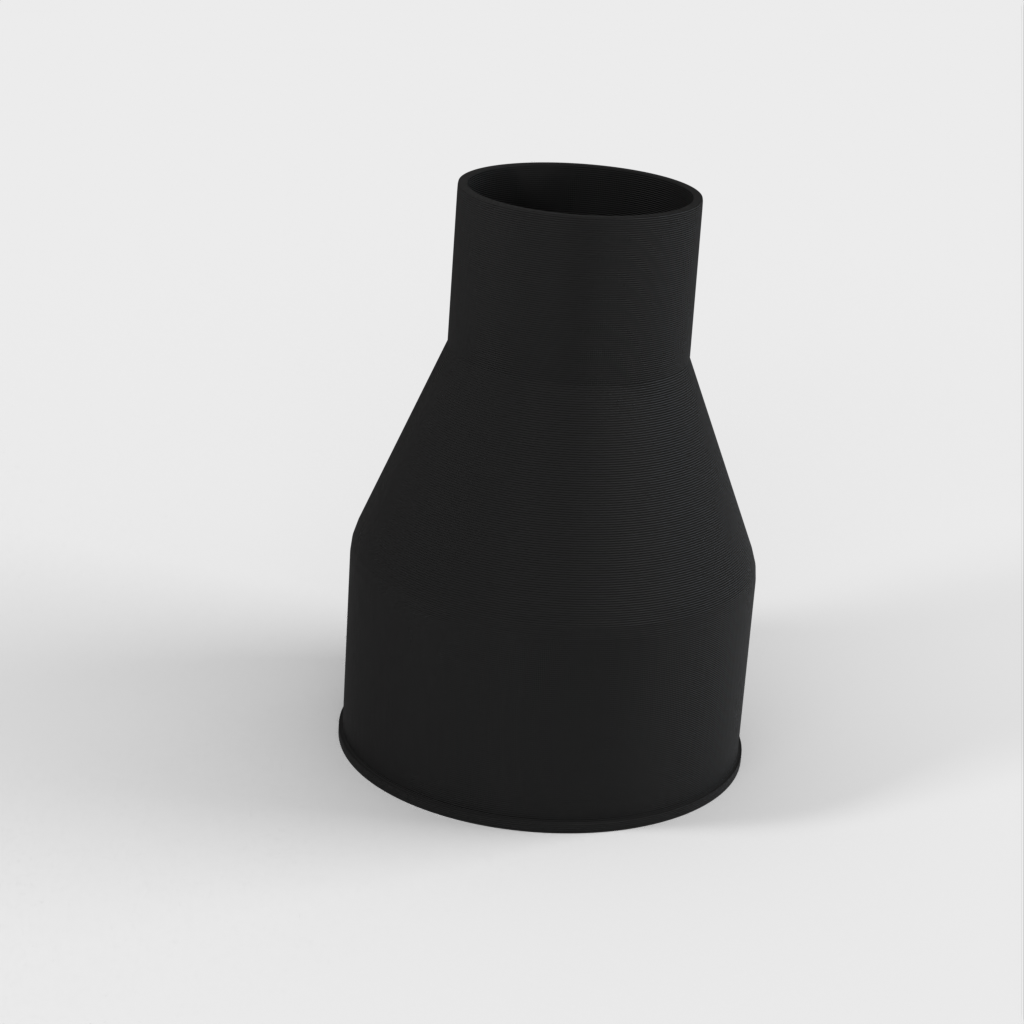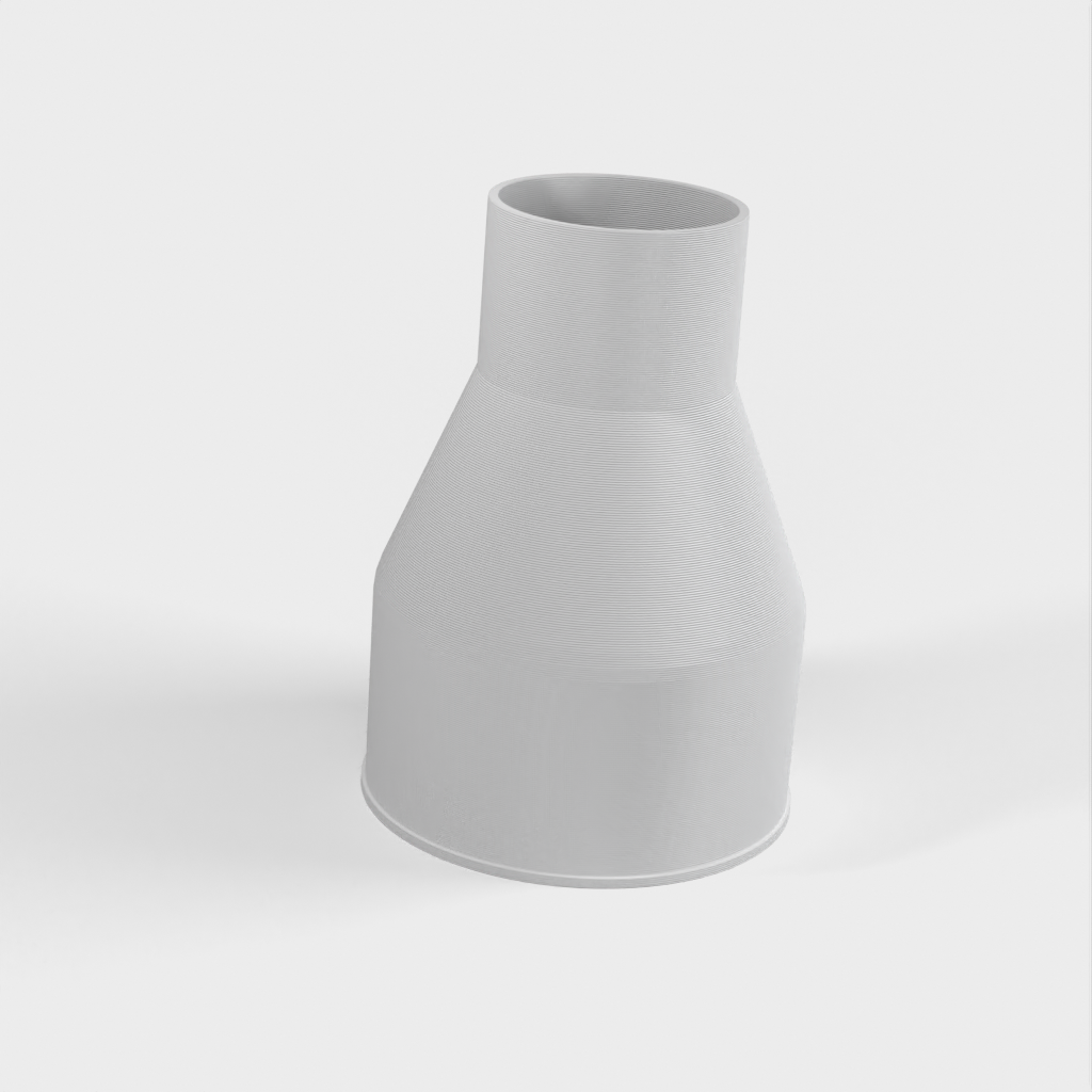 Adapter till min Bosch GTS 10 XC bordsågsdamport som passar en 100mm spånsugslang. Den stora sidan av adaptern är 100 mm med en liten läpp för att förhindra att slangen glider, medan den mindre sidan skär från 58 mm till 57 mm för att säkerställa en friktionspassning i dammöppningen på bordssågen.