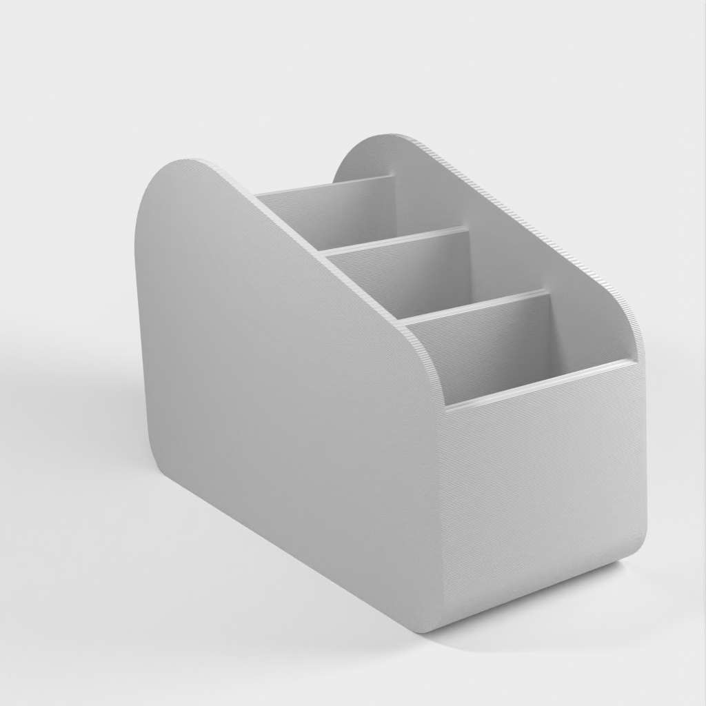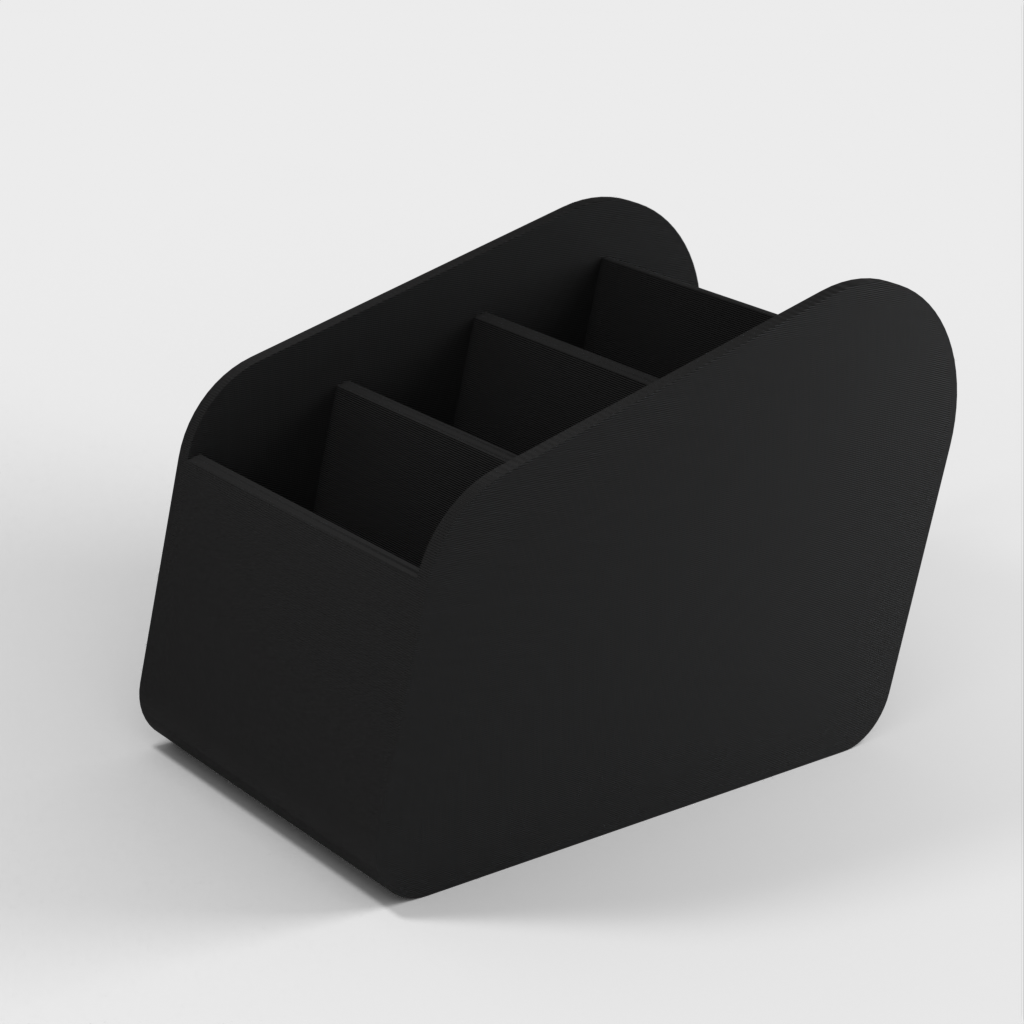 Enkel fjärrkontrollhållare för att hålla dina fjärrkontroller organiserade på ett ställe. Den har flera fack som gör att du enkelt kan hitta rätt fjärrkontroll du behöver.
