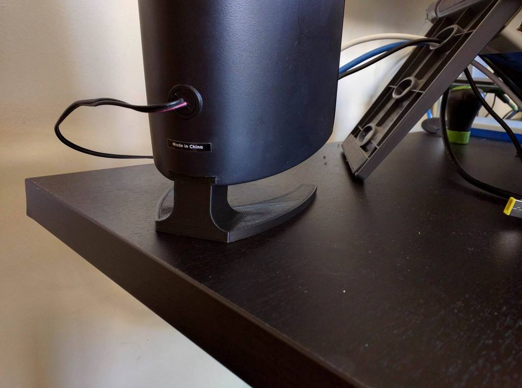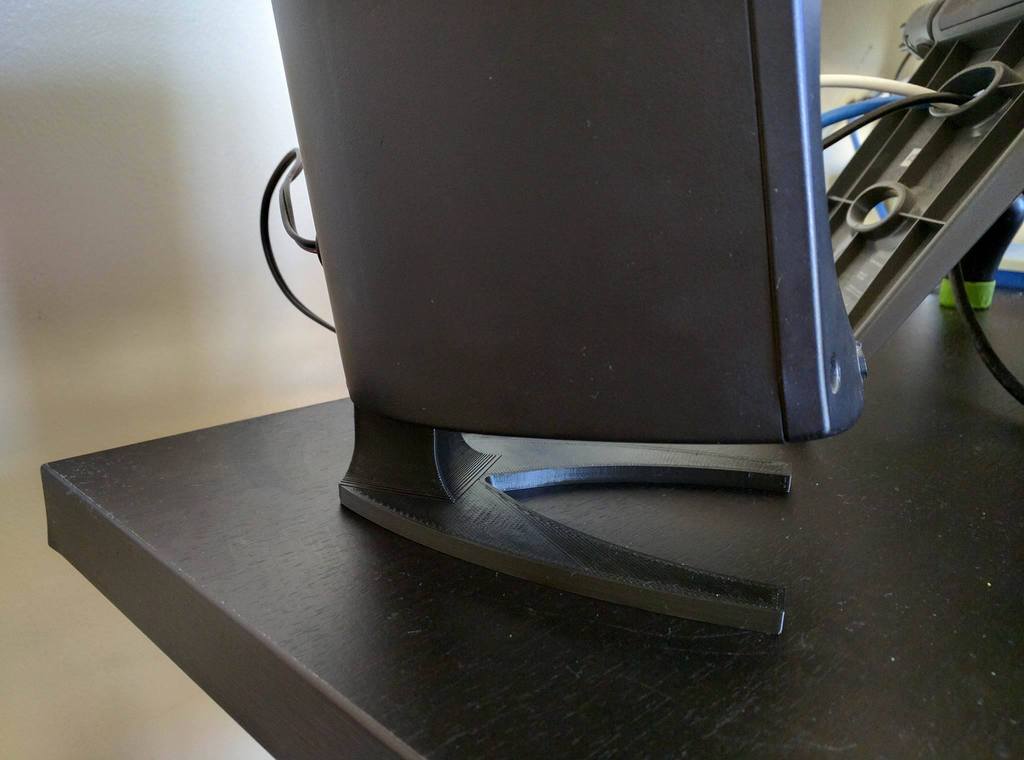 Det här är stativ för Klipsch Promedia 2.1-högtalare, som är kortare och inte sträcker sig lika mycket baktill som de ursprungliga stålversionerna. De känns väldigt solida.