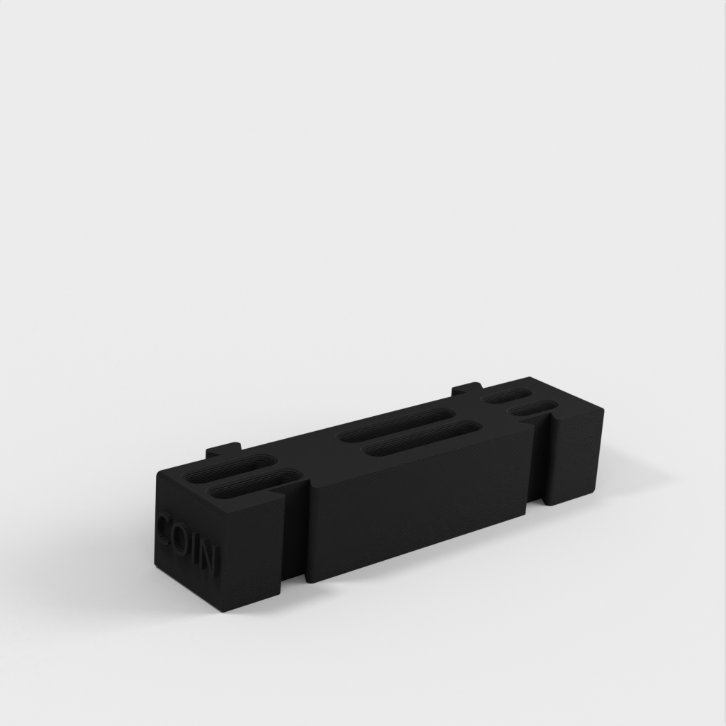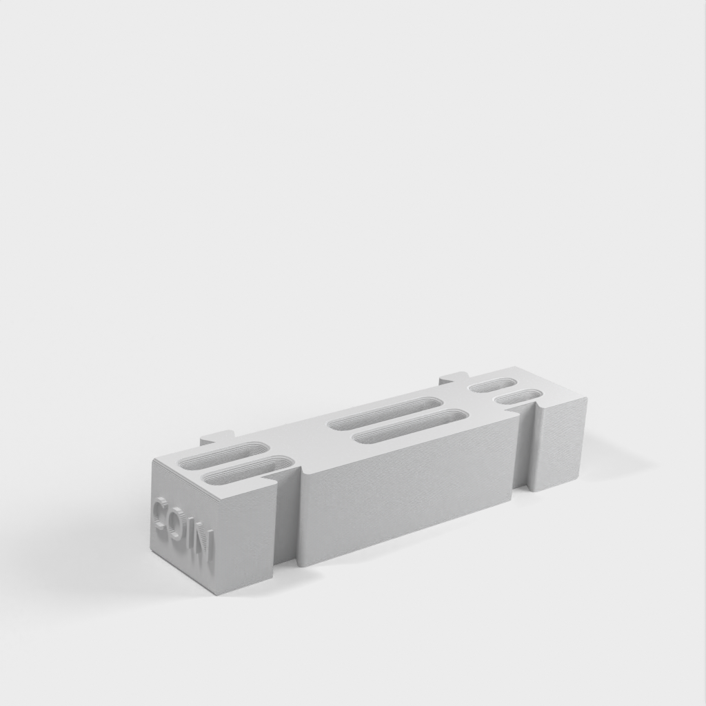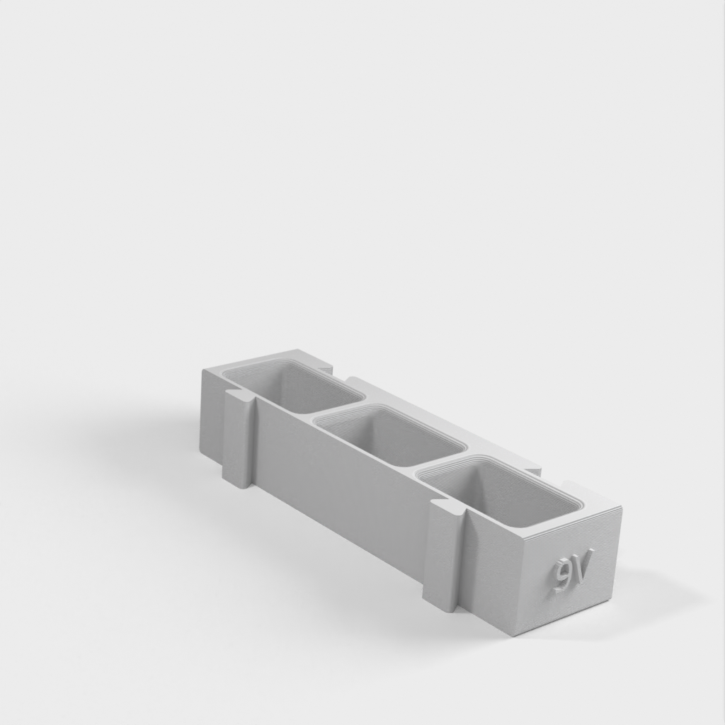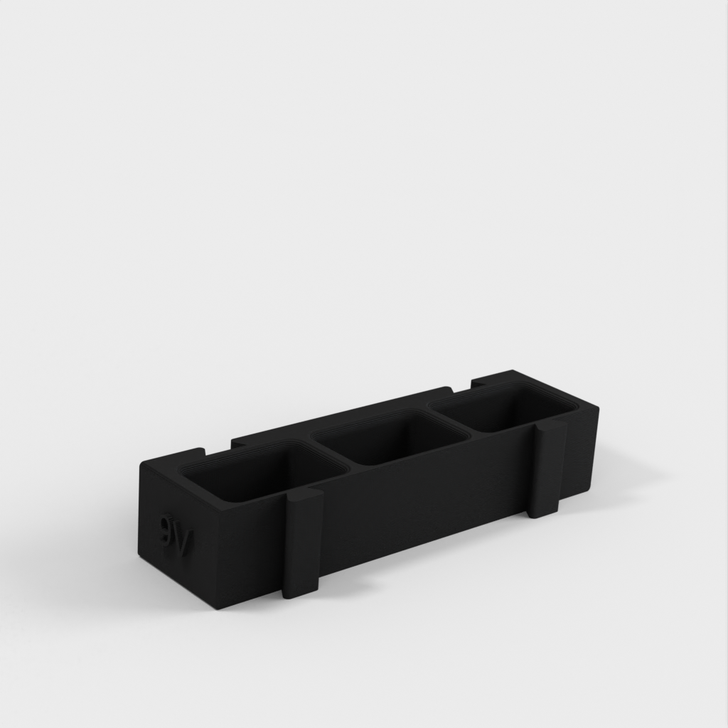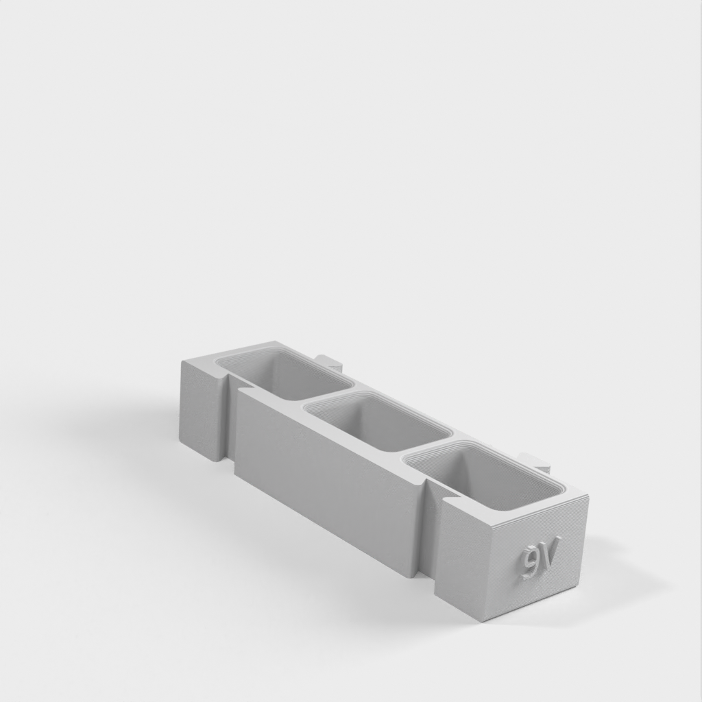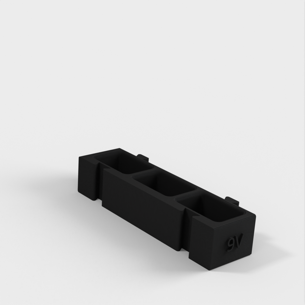 Detta är en modulär batterihållare som erbjuder olika hållare för varje typ av batteri. Alla hållare är lika långa och kan klippas ihop i vilken kombination du vill. Det är en idealisk lösning för att organisera skrivbordet och hålla reda på dina batterier. Att lägga till en AA-batterihållare och en mynthållare till samlingen ökar dess funktionalitet ytterligare.