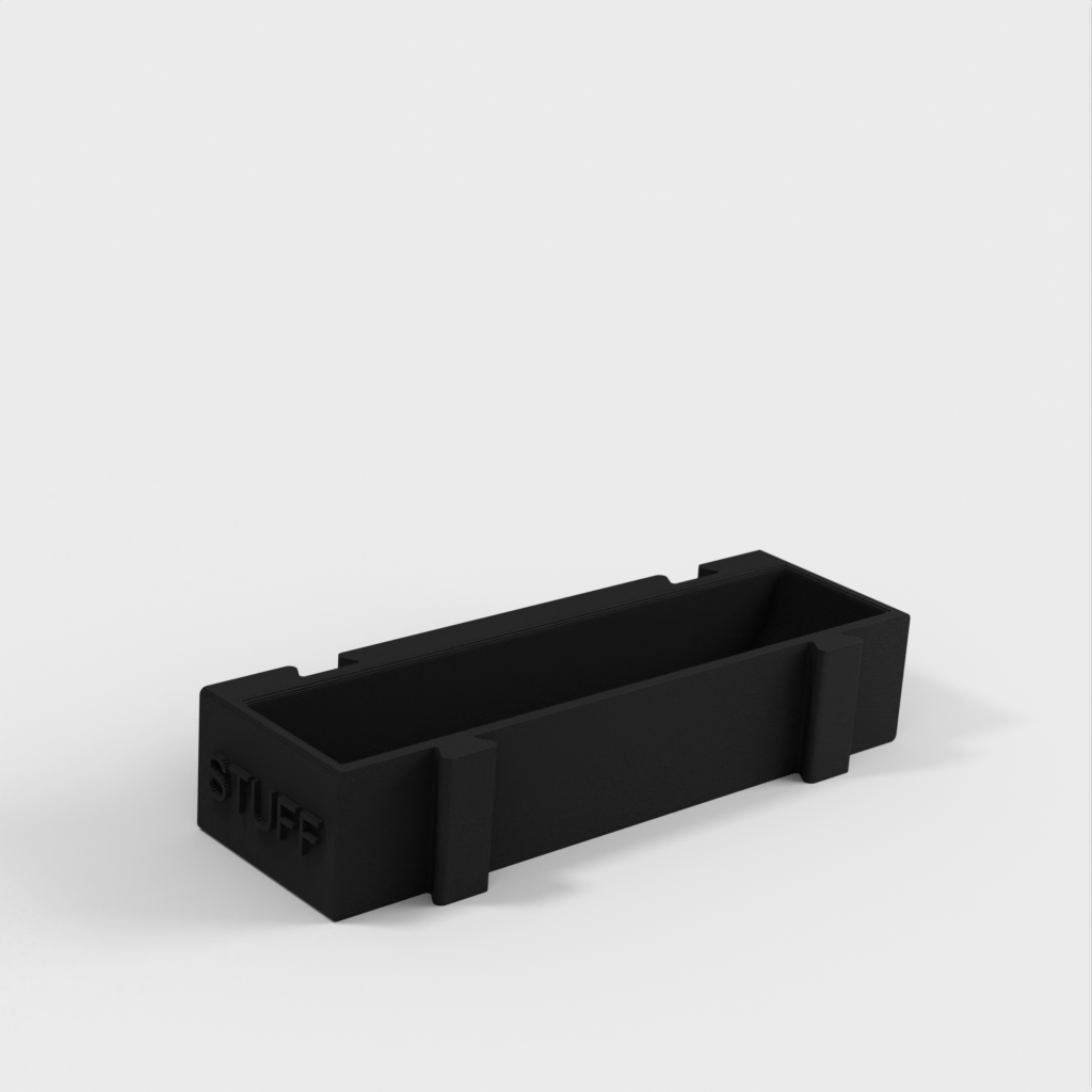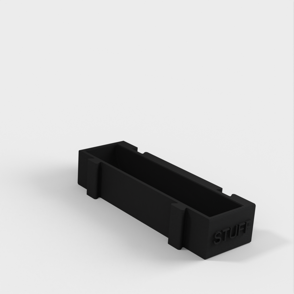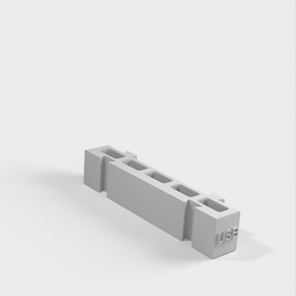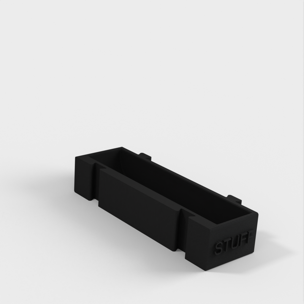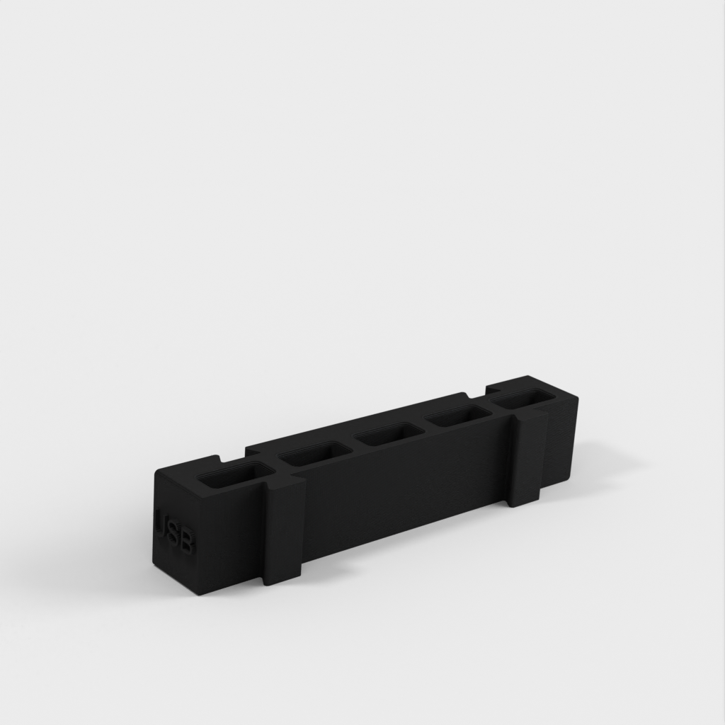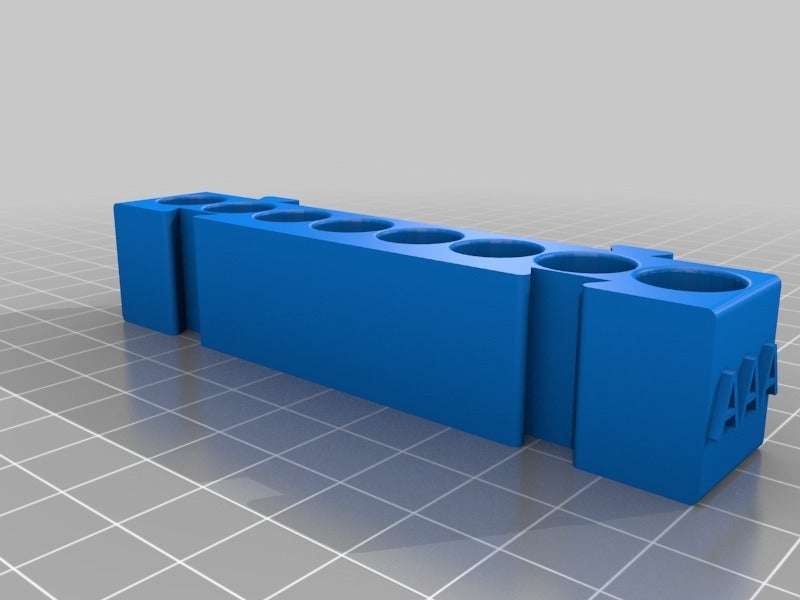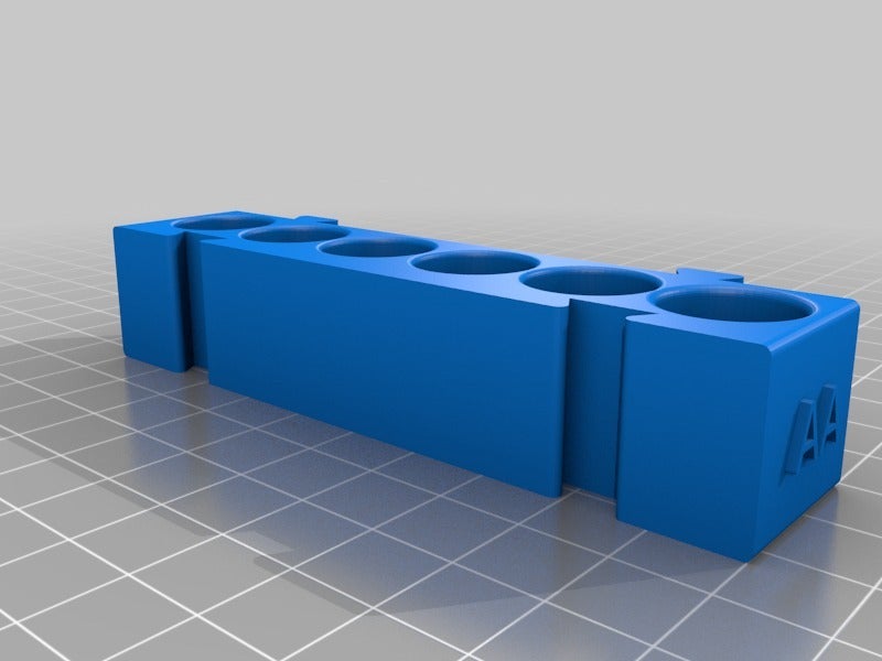 Detta är en modulär batterihållare som erbjuder olika hållare för varje typ av batteri. Alla hållare är lika långa och kan klippas ihop i vilken kombination du vill. Det är en idealisk lösning för att organisera skrivbordet och hålla reda på dina batterier. Att lägga till en AA-batterihållare och en mynthållare till samlingen ökar dess funktionalitet ytterligare.