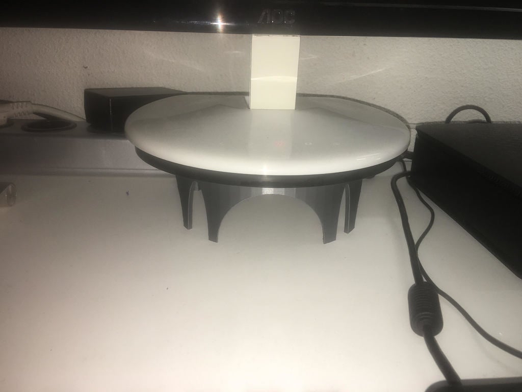 Enkelt bildskärmsställ som passar de flesta bildskärmar med rund bas. Den ger en höjd på 7 cm och har en diameter på 20 cm, som kan ändras efter behov.