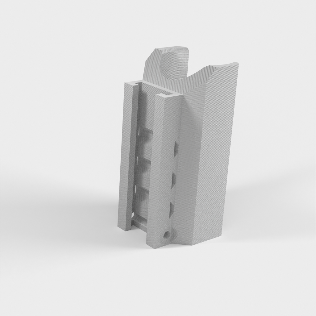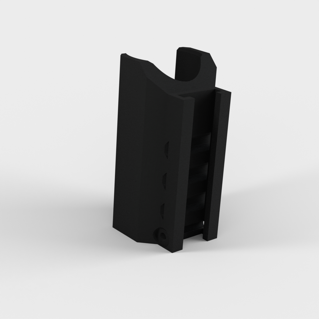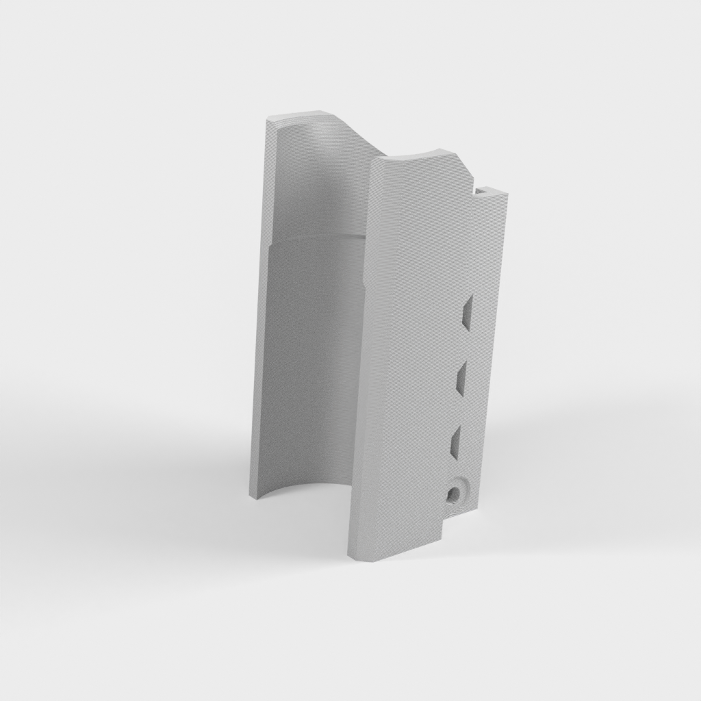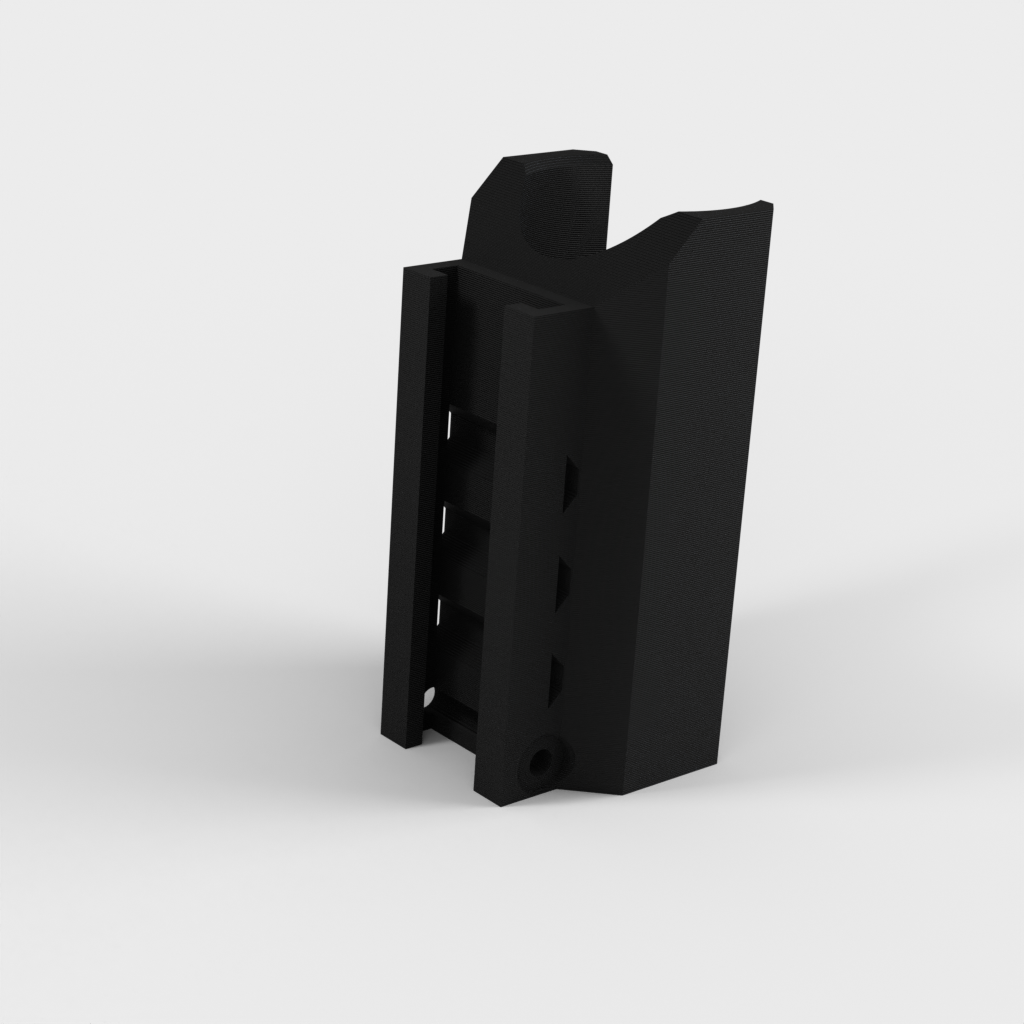 Detta är ett taktiskt ficklampsfäste för Nerf Elite Rails. Designad för de zoombara 2000 Lumen LED-fickorna som du kan hitta på Amazon. Delarna som behövs är: 2 eller 3 buntband, en M3-skruv 25 mm lång, M3-mutter, en ficklampa och en Nerf-pistol. Hålen tar en M3-bult genom dem och är designade för att sitta i urtagen på Nerf Rail. Detta förhindrar att tillbehöret faller av. De 3 hålen på sidan är för buntband för att hålla brännaren på plats. Detta är utformat för att skriva ut stående utan stöd, vilket också ger den största styrkan för att hålla facklan. Observera att detta bara fungerar med Elite Rails och endast har testats på en Stryfe.