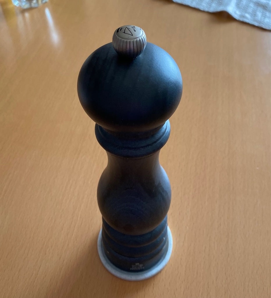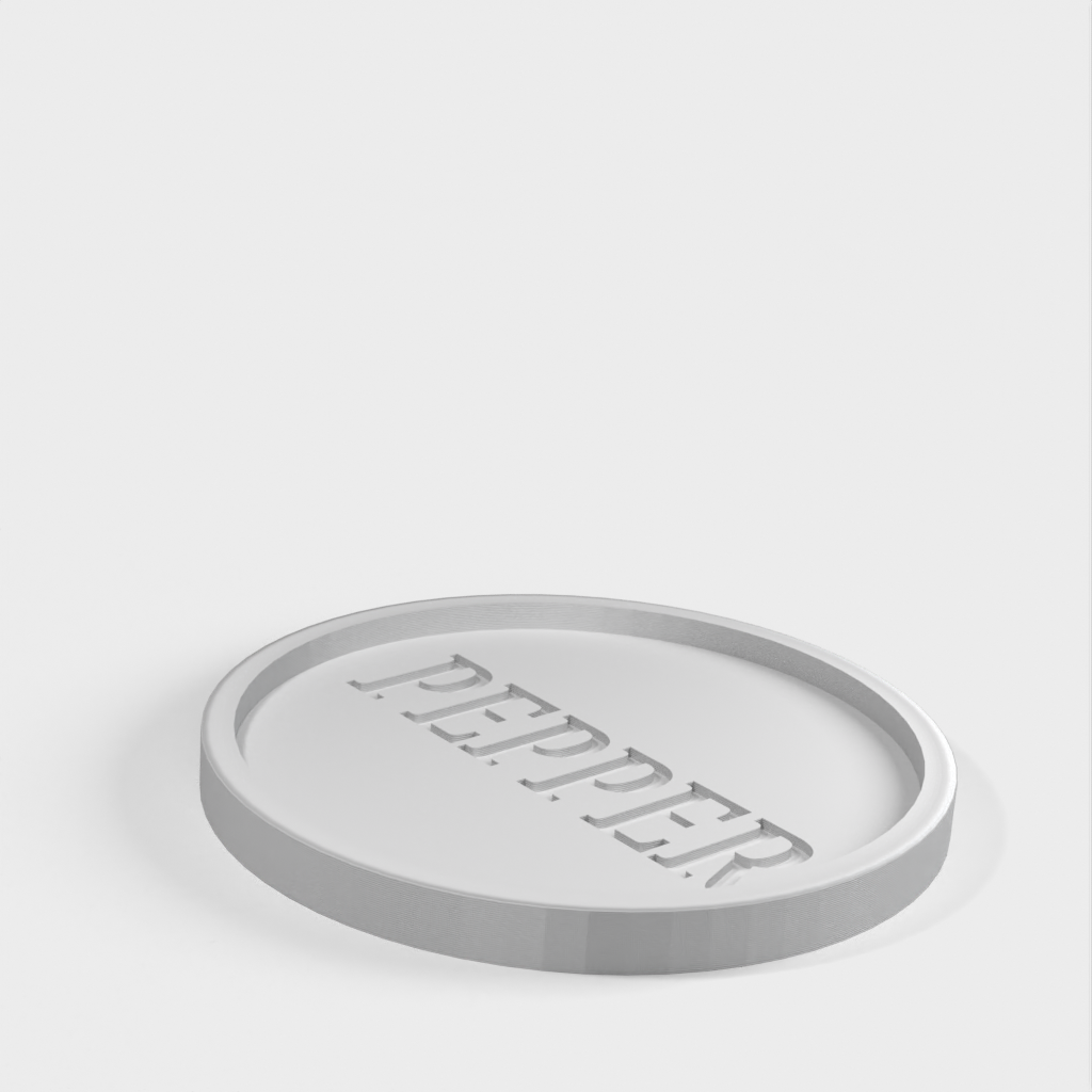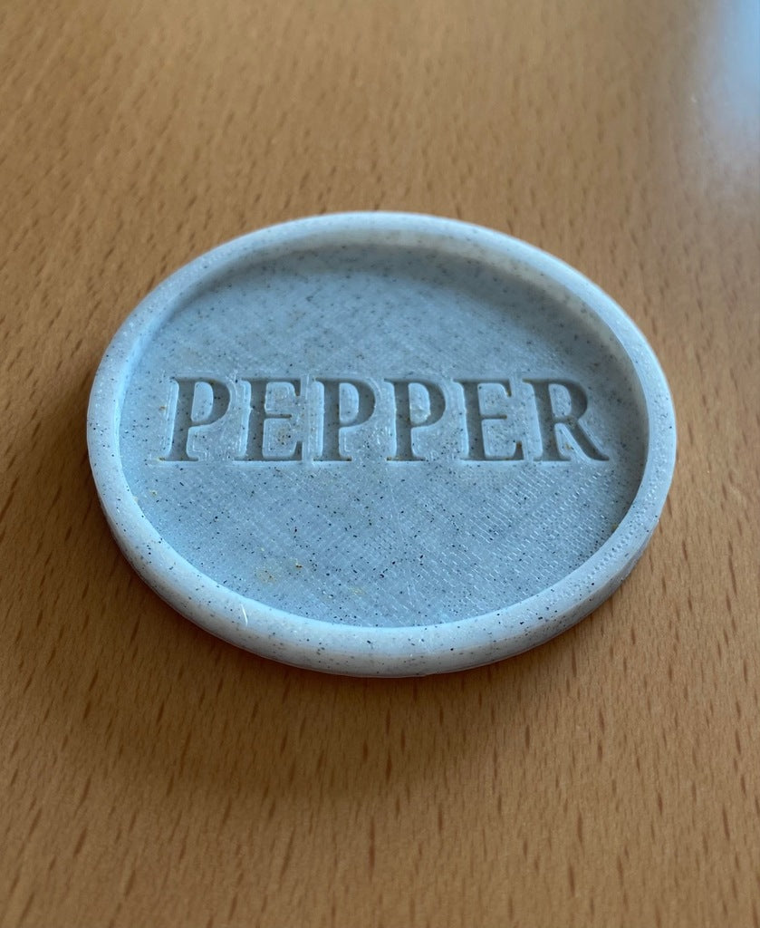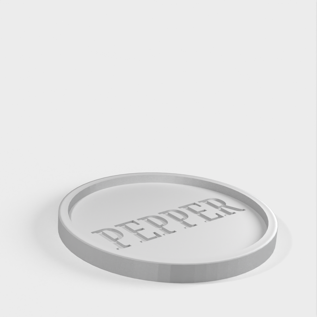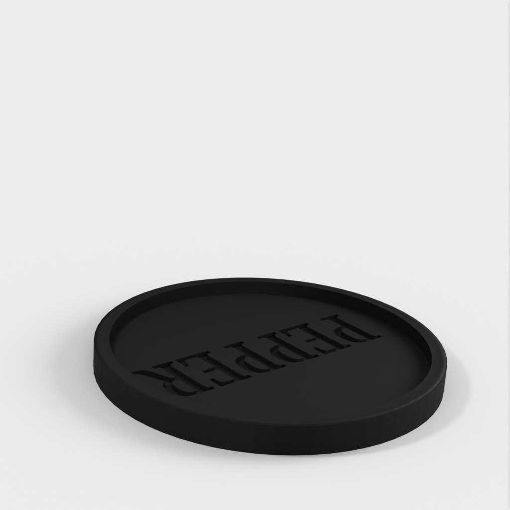 En rolig detalj är ordet "peppar" tryckt som negativt utrymme längst ner på brickan, som fylls upp med mald peppar. När den är helt fylld, överväg att lägga till ett lager av livsmedelssäkert harts för att låsa paprikan i ordet "peppar".