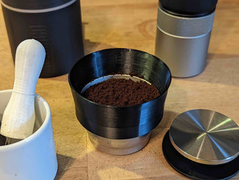 Picopresso Espresso-doseringstratten är ett praktiskt espressotillbehör utformat för att förbättra din kaffebryggning. Denna doseringstratt hjälper till att undvika att slösa kaffepulver när du doserar din Picopresso-espressomaskin. Genom att förlänga trattens räckvidd säkerställer den en jämnare och optimal fördelning av kaffepulvret i portafiltret, vilket är avgörande för en bra "puckbryggning". Detta bidrar till en mer stabil och god espresso, varje gång. Tratten är ett oumbärligt kaffetillbehör för alla Picopresso-ägare som vill uppnå precision och en ren arbetsyta.