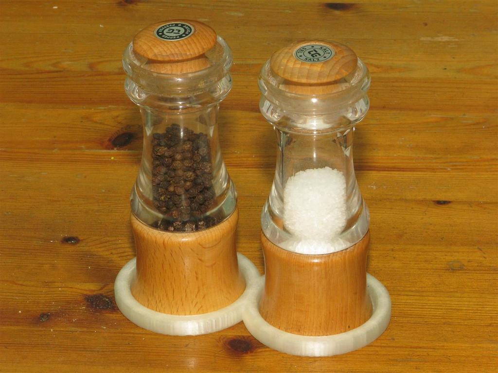 Detta är en dubbelbit för att förvara både salt- och pepparkvarnar i skåpet eller på bordet. Den är designad för att fånga upp och hålla kvar allt överflödigt salt eller peppar som kan falla från kvarnarna, vilket säkerställer mindre röra i ditt kök.