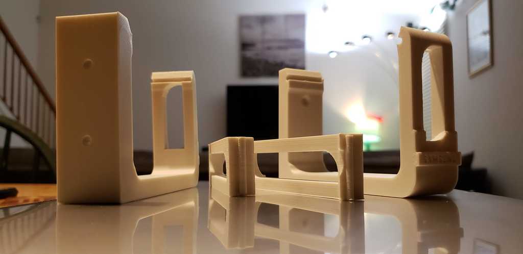 Detta välkonstruerade fäste kan bära upp till 11 pund (per fäste par). Den kan antingen skrivas ut som en enhet, eller i 2 delar (Övre ram och väggmontering) på vänster och höger sida. Om din soundbar väger 11 pund eller mindre och har en djupdimension på 100,50 mm eller mindre, med en höjddimension på 65,50 mm eller mindre, kan detta vara din. Speciellt designad för Samsung Sound Bar, den är idealisk för hemmabiosystem.