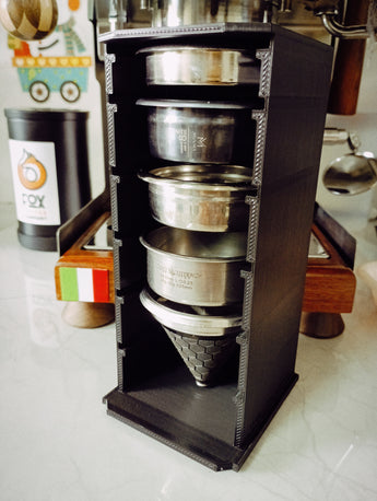Denna praktiska hylla är utformad för att ge en optimal förvaringslösning för dina 58 mm filterkorgar . Den hjälper till att hålla ditt kaffeområde snyggt och organiserat, så att du enkelt kan hitta rätt filterkorg när du tillagar din favoritespresso . Med filterkorgarna samlade på ett ställe minimerar du röran och maximerar effektiviteten i din dagliga kafferutin.