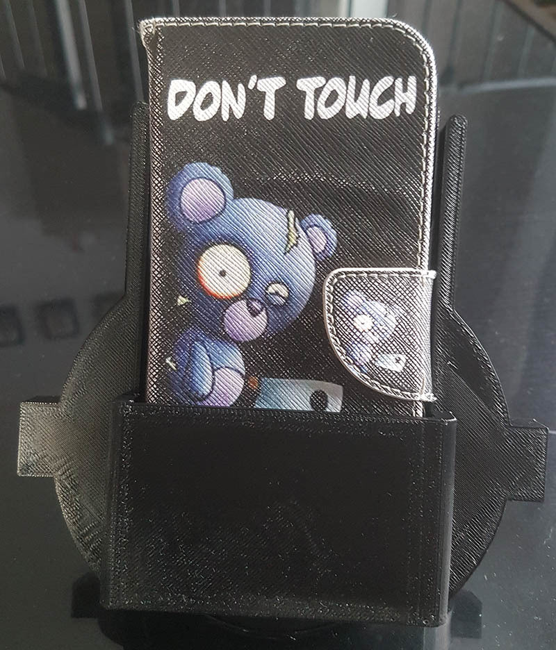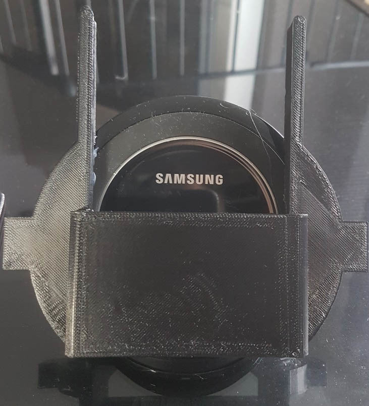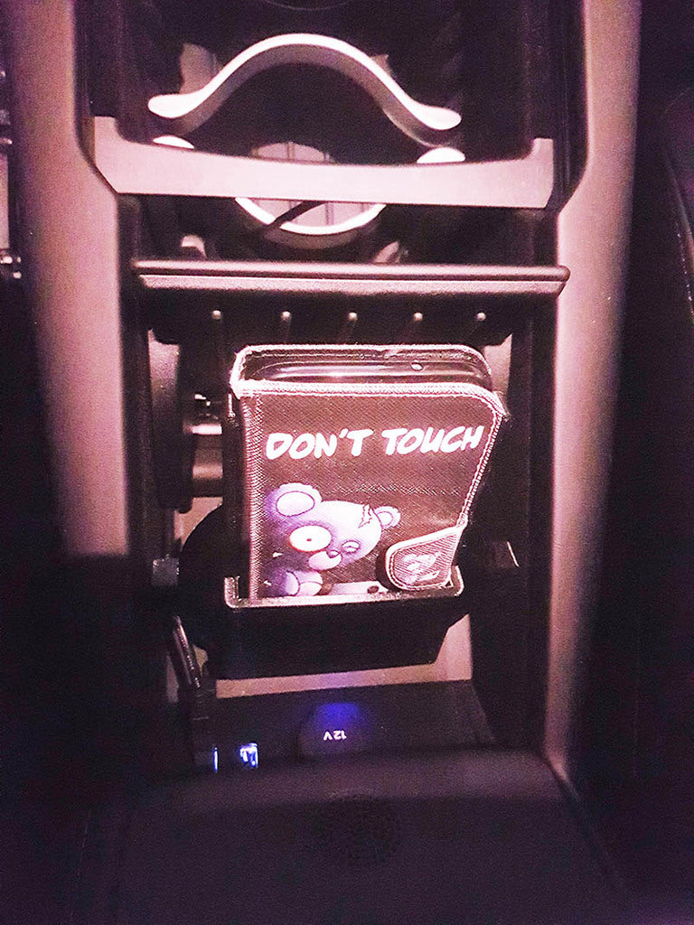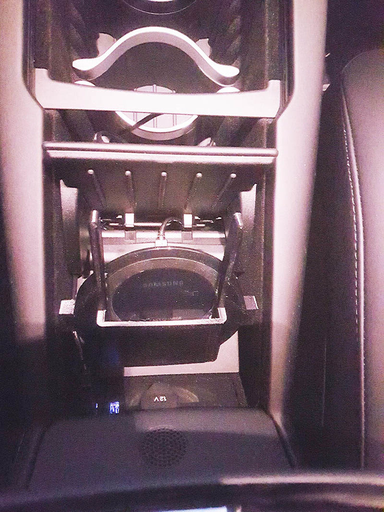 Ett Tesla Model S Qi trådlöst laddningsställ för Samsung-telefoner. Den här enheten fungerar som en enkel telefonhållare som du kan fästa på en Qi-laddningsplatta. Den är designad för att passa perfekt in i Tesla Model S-konsolen. Den är specifikt kompatibel med "Samsung Fast Charge"-laddaren, men kan enkelt anpassas till andra Qi-laddningsplattor.
