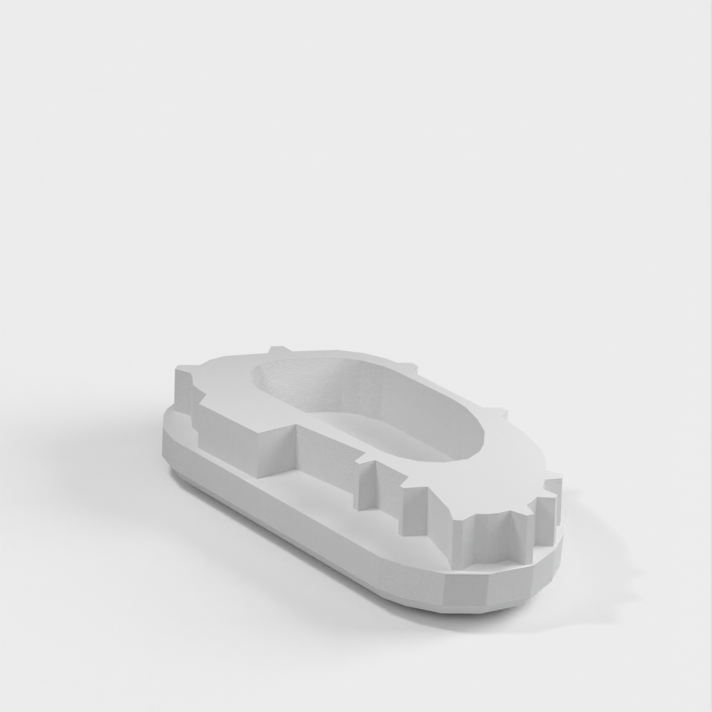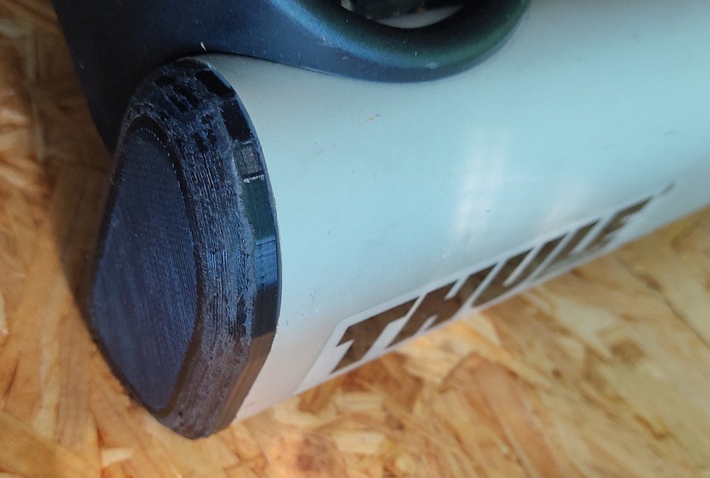 Utbytbar gavel för en Thule Euroclassic G5 908/909 och 928/929 cykelställ för bil. Designad för att ersätta borttappade eller trasiga ändstycken, garanterar detta ändstycke perfekt integration med designen och stilen på stativet. Vi rekommenderar att du använder PETG- eller ABS-material för att säkerställa hållbarheten, eftersom PLA kan smälta i direkt solljus. Installationen är enkel genom att helt enkelt spegla .stl-filen i skäraren till andra sidan.