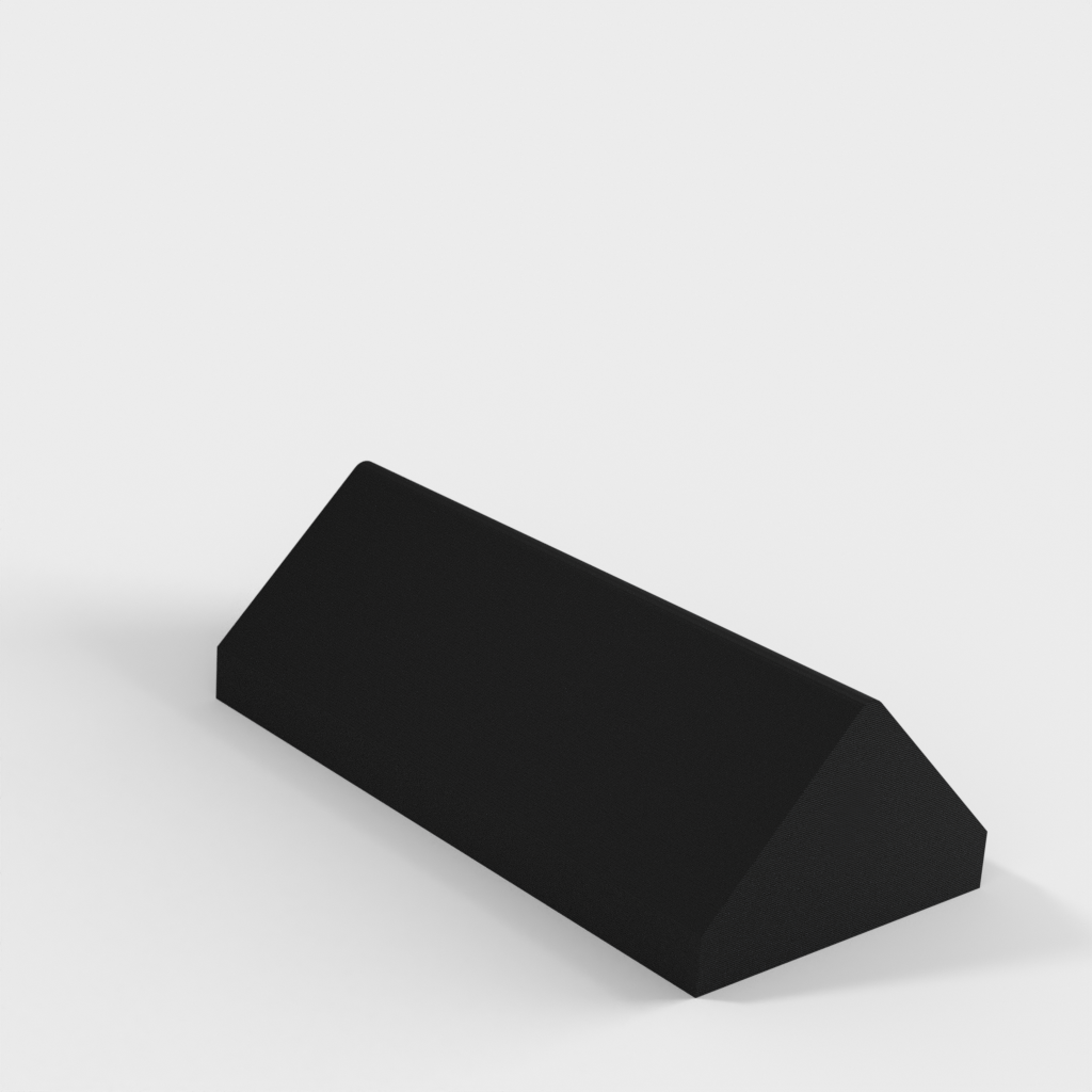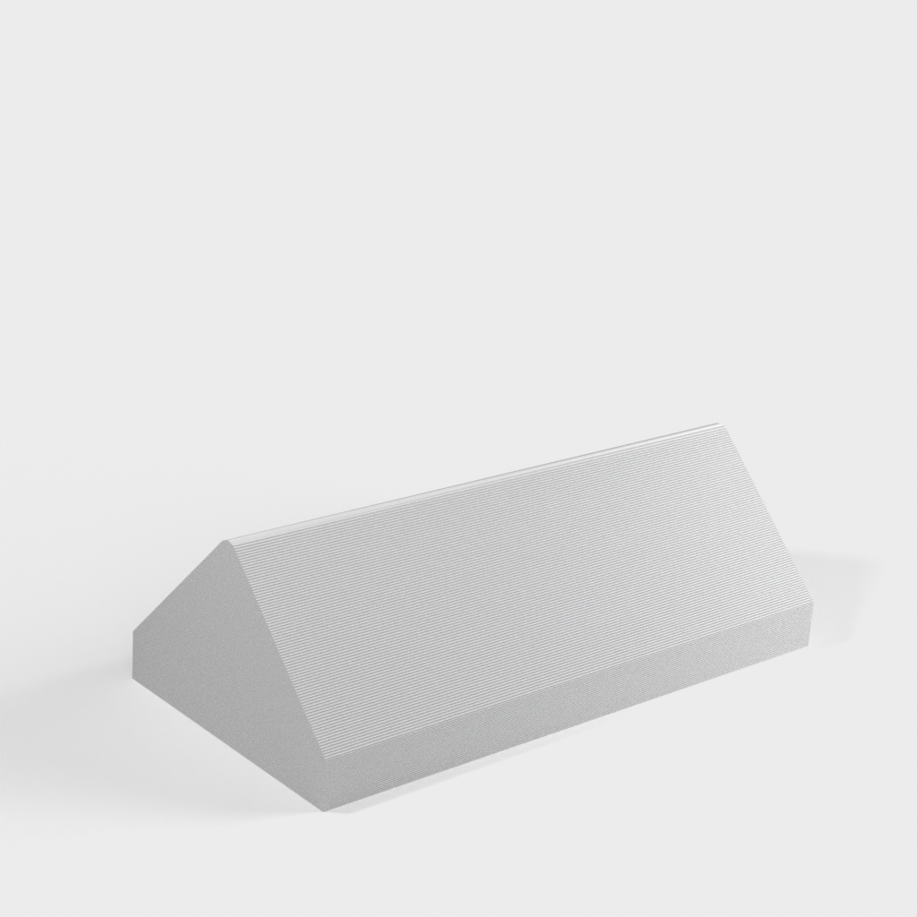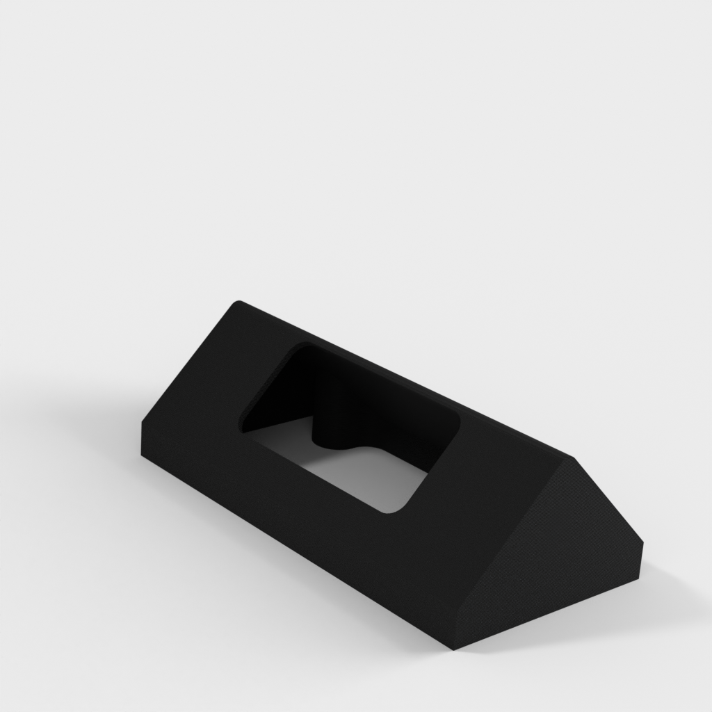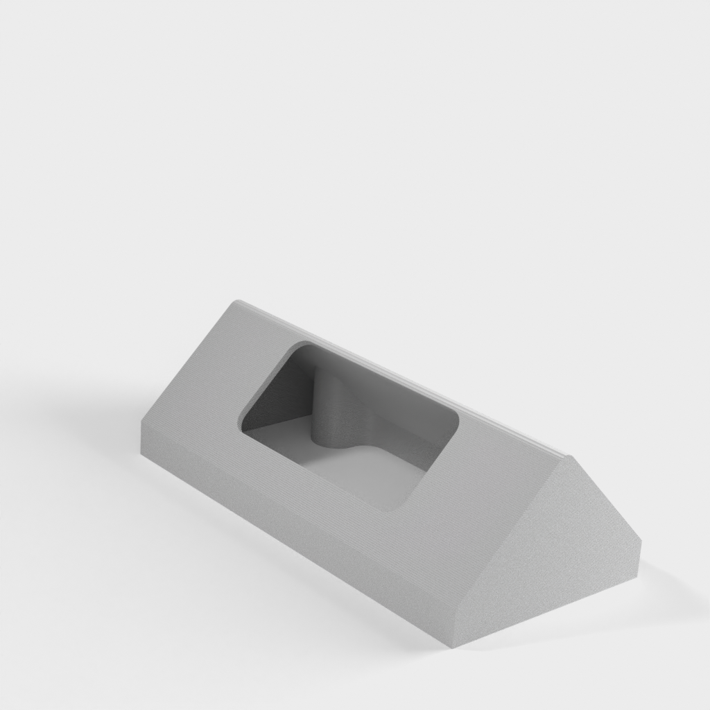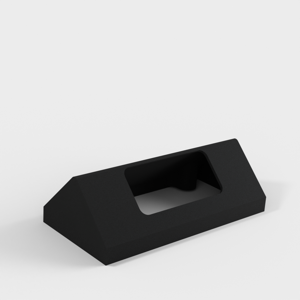 Det finns ett sidohål för kabeldragning. Produktfotot visar trycket på "877_ring_v2_corner_mount v6.stl", som har ett litet utrymme runt kanterna på grund av den avfasade kanten på fästet.