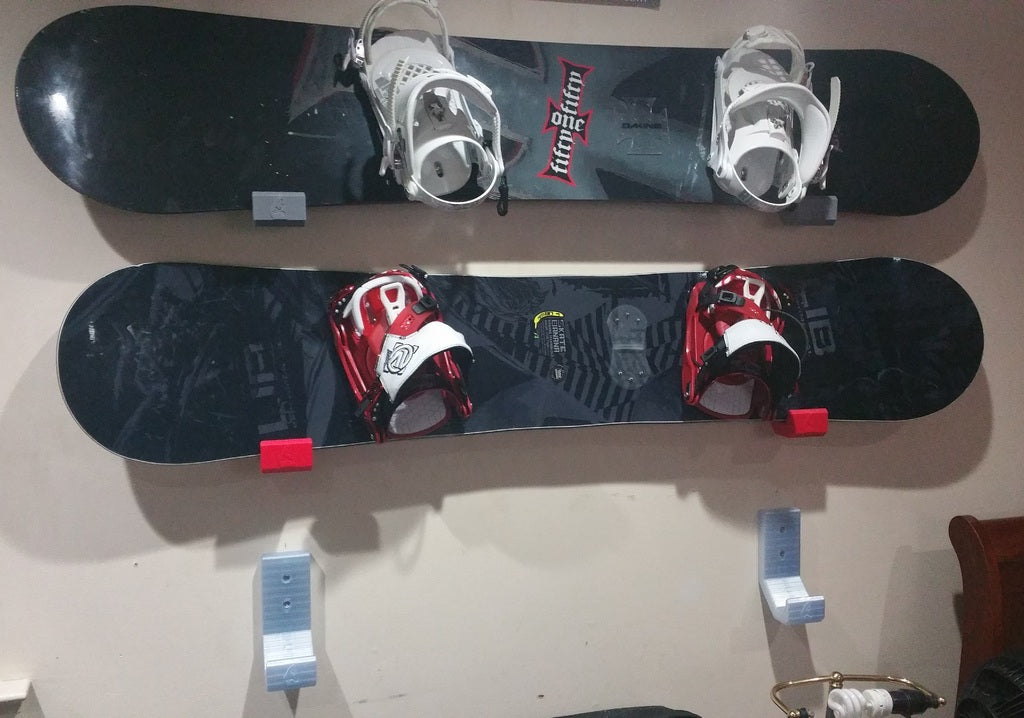 Enkelt väggfäste för en snowboard så att du kan plocka upp dem och hänga dem på väggen.