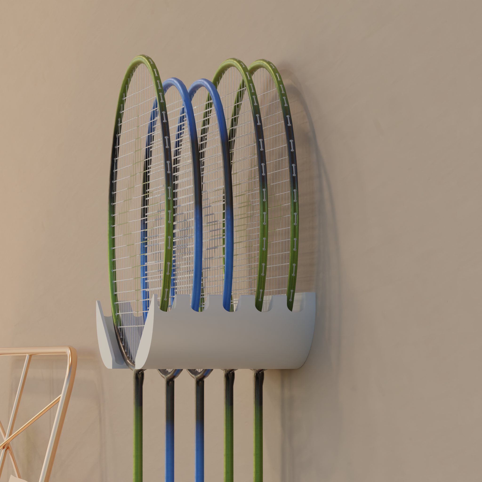 Detta rack är designat för att rymma upp till 5 racketar samtidigt. Den kan monteras på väggen med två skruvar (ingår ej), vilket hjälper till att hålla din sportutrustning organiserad och lättillgänglig.