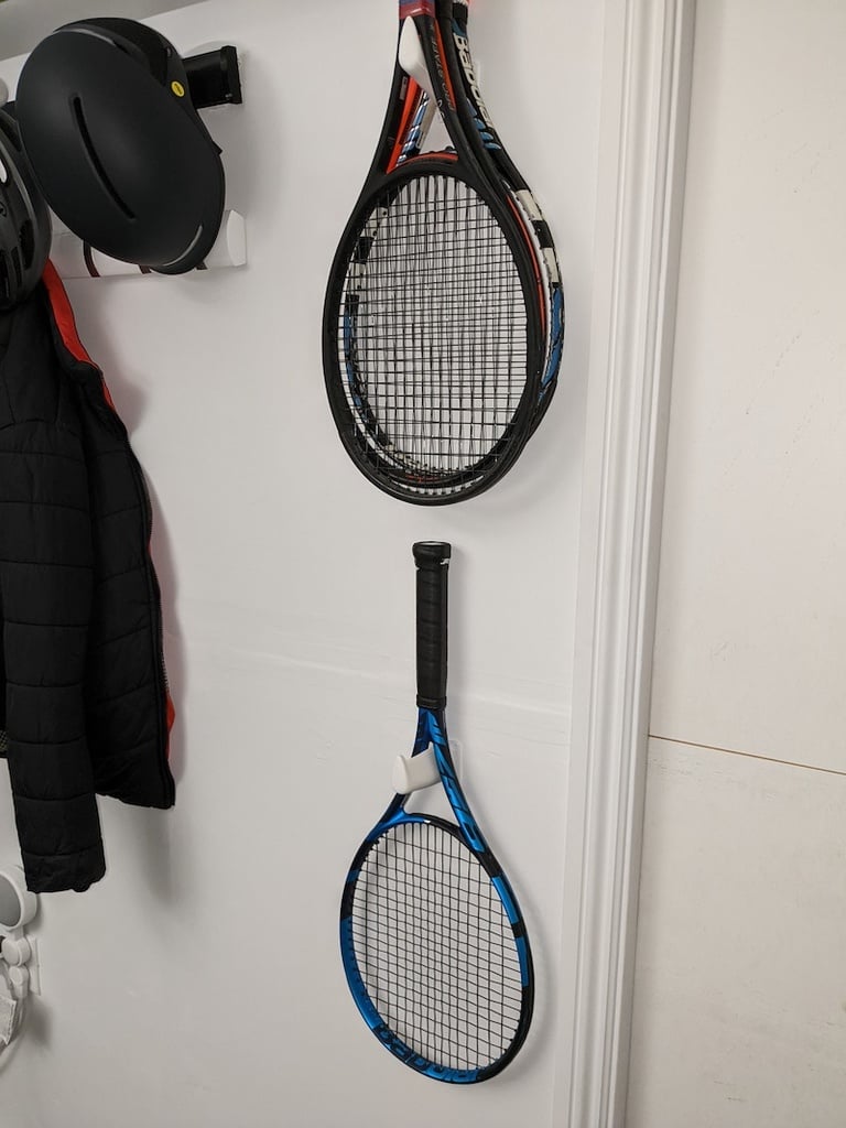 Vägghängd tennisrackethållare