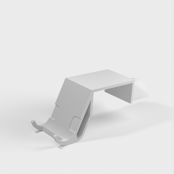 Beskrivning: Xbox Elite-kontrollern och headsethållaren är designad att hänga över toppen av en Xbox One S när den står på sidan. Den har en Elite-kontroller på ena sidan och ett spelheadset på den andra.