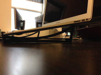 Stativet består av tre separata delar, inklusive två sidostycken och en solid tvärbalk, som tillsammans skapar en stabil plattform. Även om det är specifikt utformat för Macbook Air 13" , är det extremt flexibelt och kan justeras för att stödja en mängd olika bärbara datorer, från kompakta 11-tumsmodeller till större 15-tums Macbook Pro-stativliknande enheter. Dessutom finns det små hål inbyggda i sidostyckena, vilket gör att du kan sätta in en alternativ tvärbalk om så önskas (tvärbalken ingår ej). Med detta stativ får du en funktionell och mångsidig lösning för din digitala vardag.