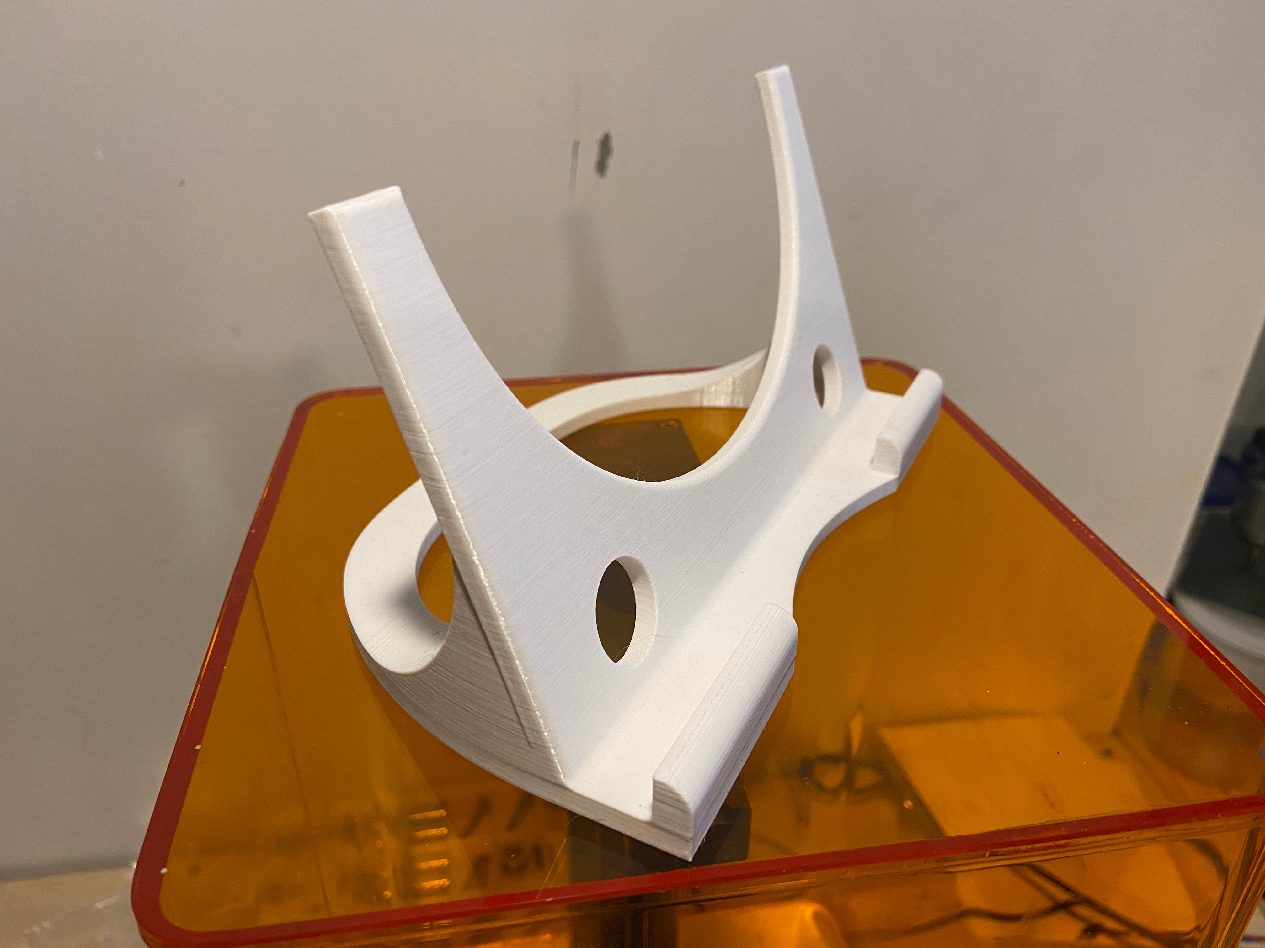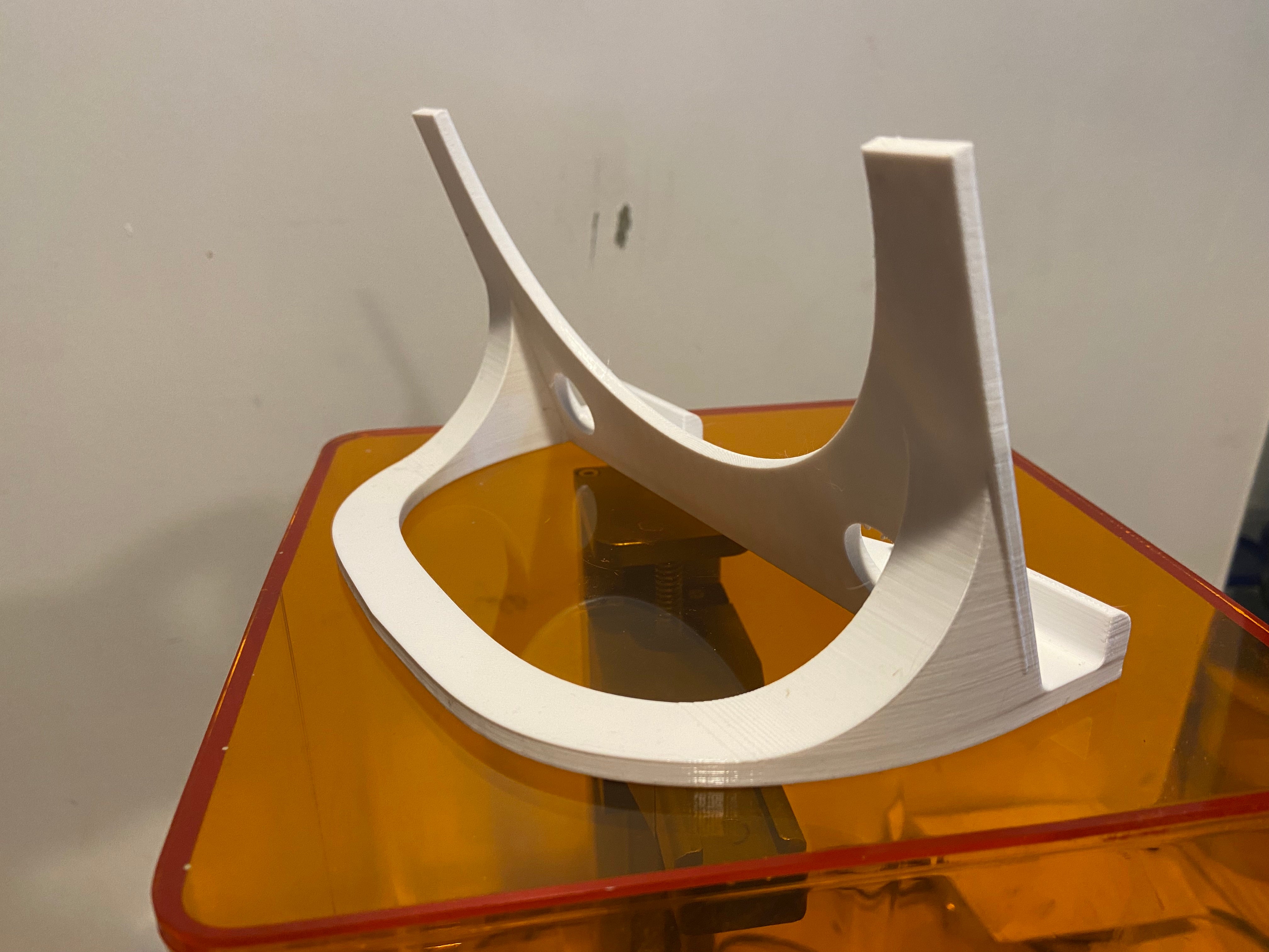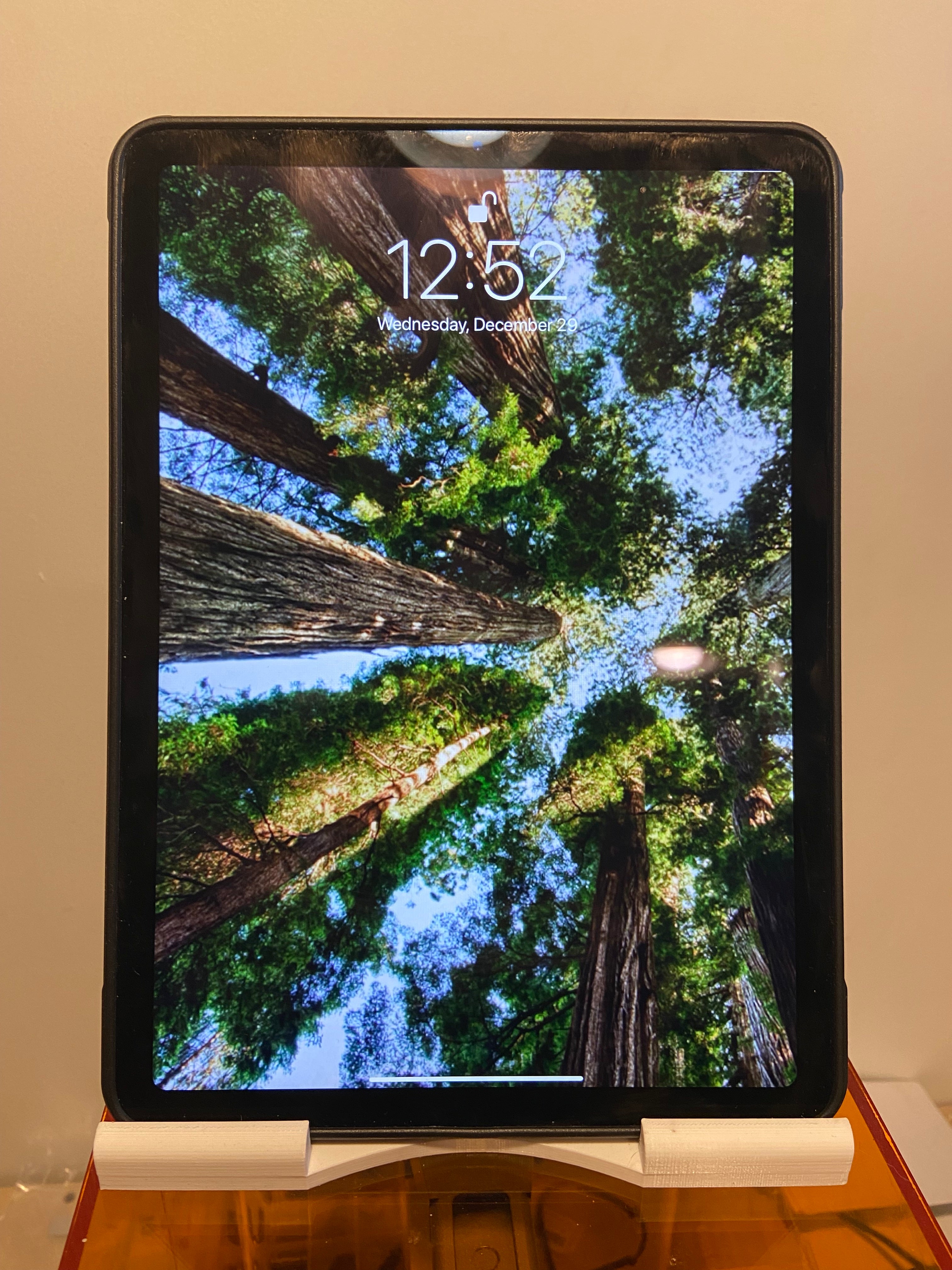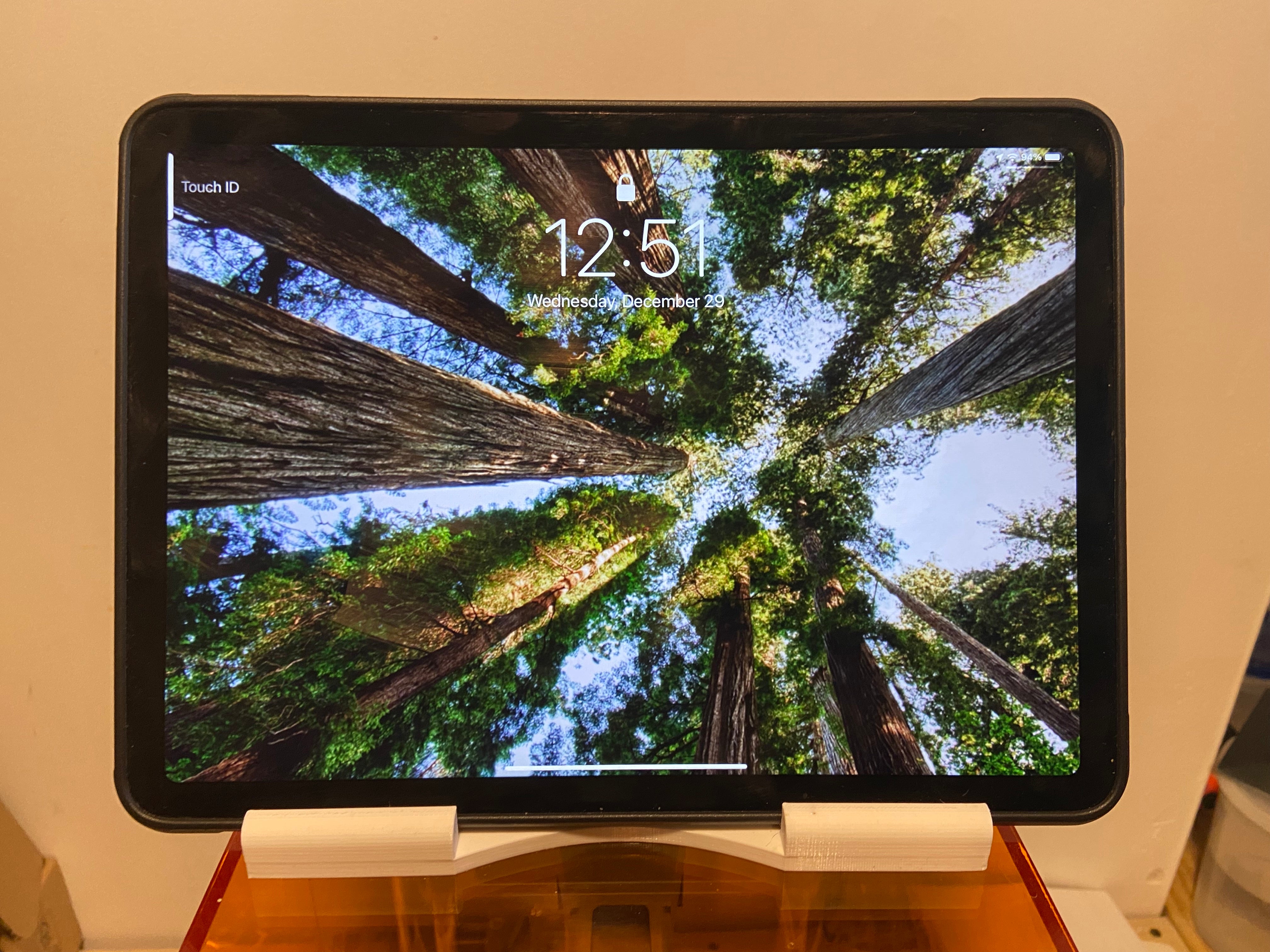 Stabilt iPad-ställ designat för att hålla din iPad på plats medan du använder den. Dess stora kanal gör att stativet kan användas även med ett skyddsfodral på din iPad. Detta kommer inte att falla när du trycker på skärmen under val eller svepning. Denna produkt är byggd för att tåla upprepad användning. Bilderna visar stativet placerat ovanpå en hartsskrivare, men det är tryckt på en Prusa MK3S.