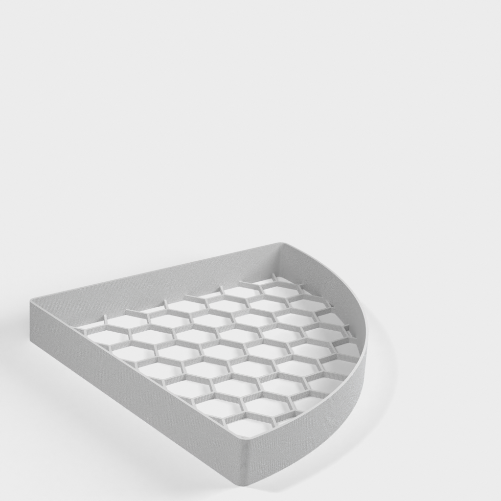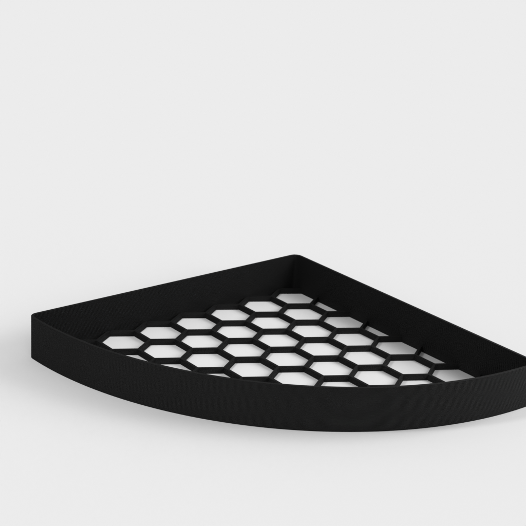 Denna hörnhylla är specialdesignad för både badrum och kök och kan enkelt monteras på väggen med hjälp av dubbelsidig Gekkotape. Hyllan är robust och hållbar, samtidigt som den väger väldigt lite, vilket gör den idealisk för förvaring av småsaker som tvål, schampo, kryddor och mer. Hyllan är tillverkad av vit PETg-plast vilket ger extra styrka och lång livslängd. Dessutom är den utrustad med en löstagbar BIQU magnettavla, som kan vara praktisk för att hänga upp metallföremål.