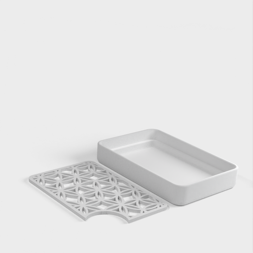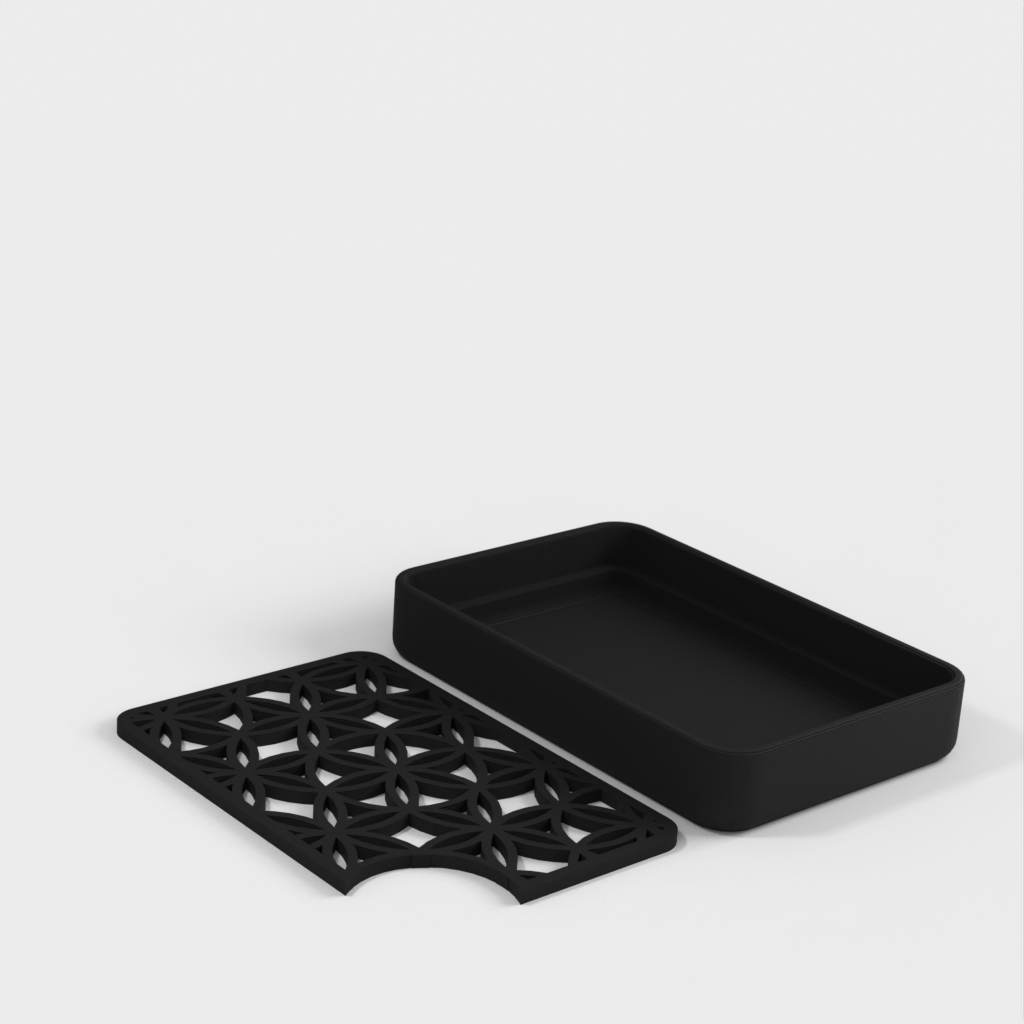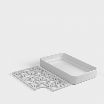 Detta är en praktisk och elegant tvålkopp, designad med en solid bas och ett avskuret hörn för att enkelt hälla ut överflödigt vatten. Den unika strukturen gör det enkelt att förvara din tvål och hålla den torr mellan användningarna, vilket förlänger tvålens livslängd och håller ditt badrum snyggt och snyggt.