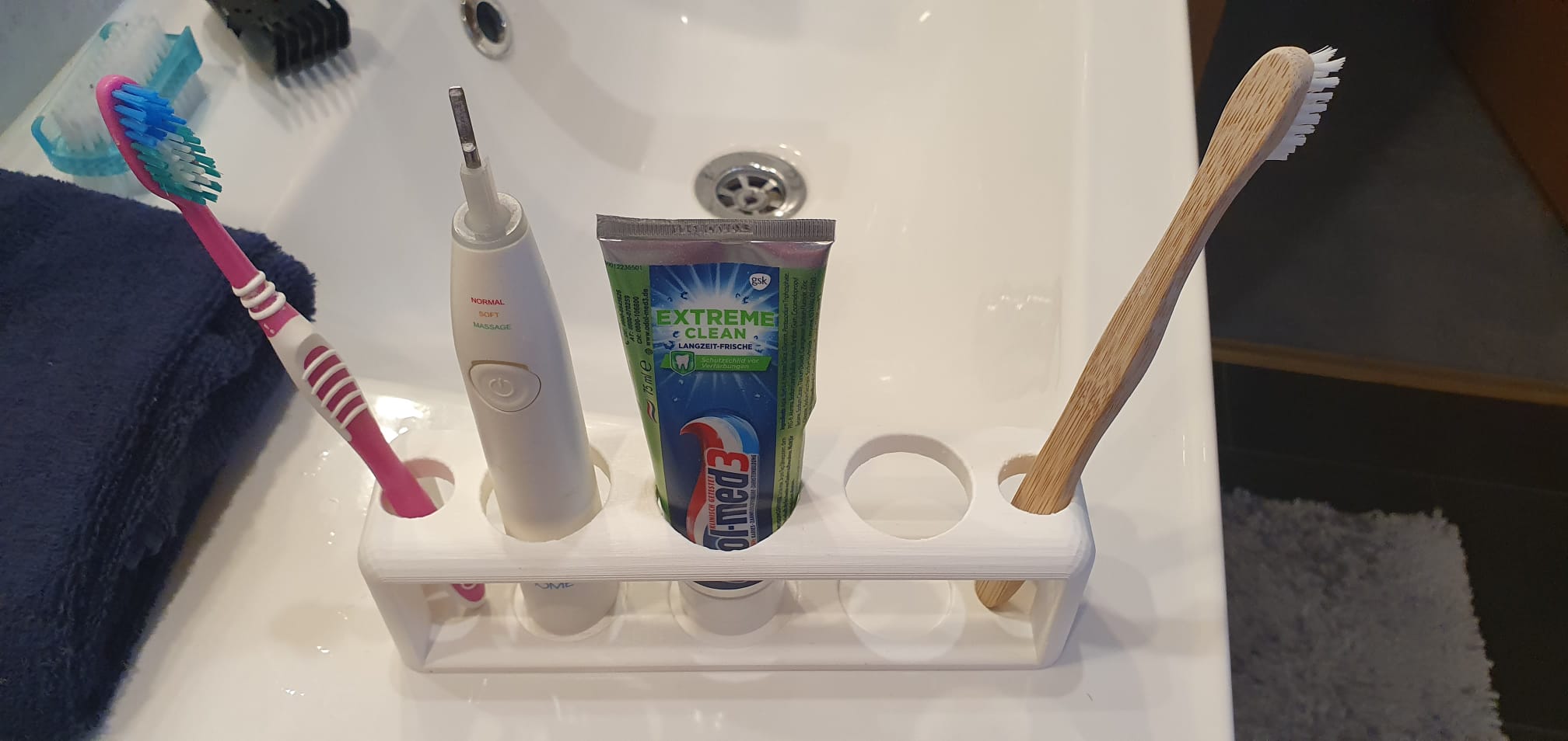 Tandborsthållare för 2 normala och 2 eltandborstar med plats för tandkräm