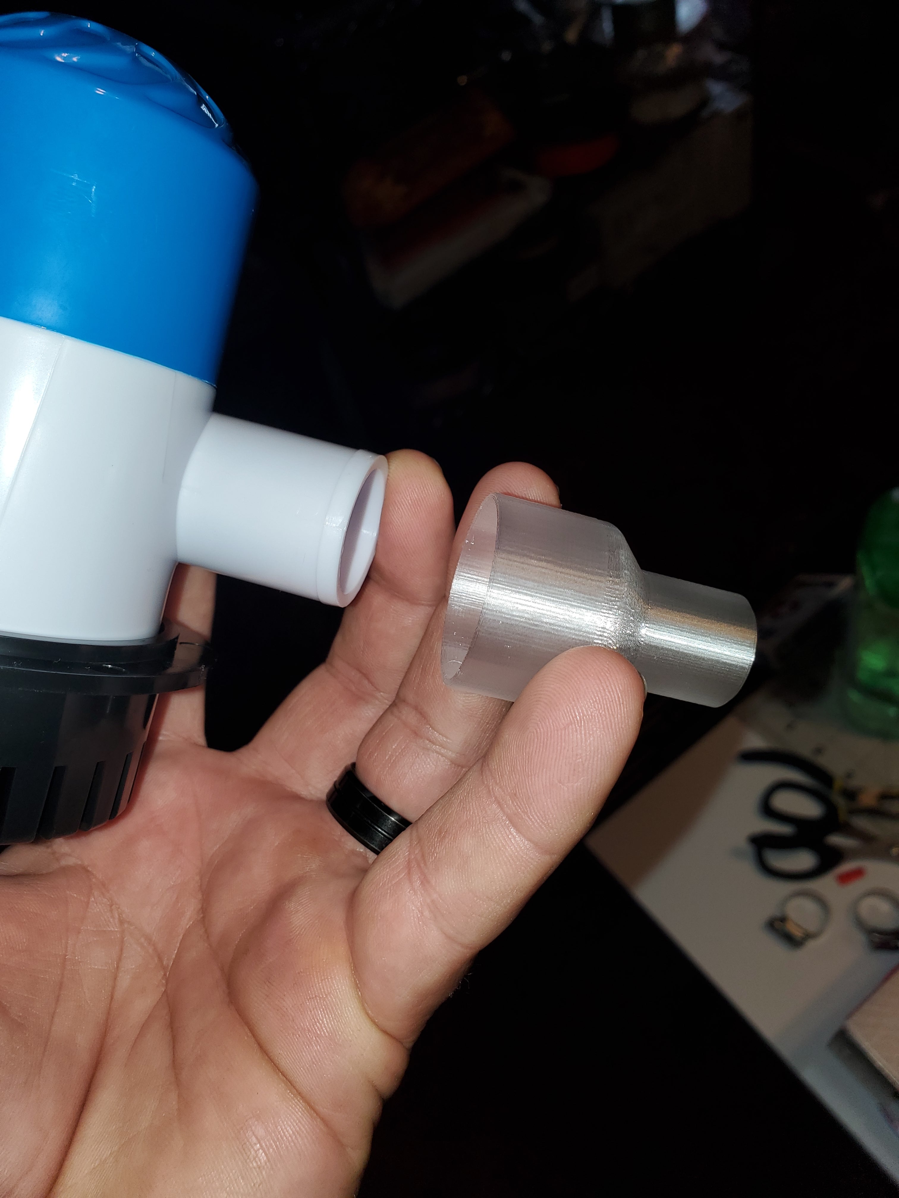Denna adapter är utformad för att minska storleken på din länspumps utlopp från 2,5 cm till 1,8 cm. Den låter dig anpassa din länspump till mindre slangar eller specifika system, vilket kan vara fördelaktigt i applikationer där utrymmet är begränsat eller exakt vattenflöde krävs. Reduceraren är särskilt användbar i marina miljöer, till exempel på båtar, och för vattenhanteringssystem som motordrivna slusslådor. För optimal hållbarhet och en säker anslutning rekommenderas att trycka denna reducerare i PETG och fästa den med ett lämpligt vattentätt lim som E6000, Shoegoo eller silikon. Detta säkerställer tillförlitlig funktion i krävande våta miljöer.
