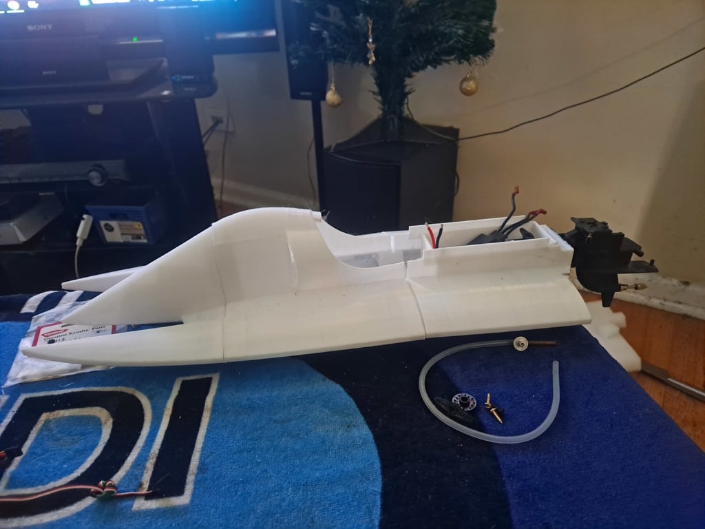 Båten är konstruerad med integrerade skott som möjliggör enkel montering av skrovsektionerna, vilket säkerställer en robust och hållbar konstruktion. En 5 mm akterspegel ingår i konstruktionen, vilket ger en solid grund för enkel montering av en utombordsmotor. För att skydda båtens interna hårdvara, såsom elektroniken, finns en dedikerad elektroniklåda, och luckorna är försedda med en säker kardborreknäppning som håller dem på plats även under dynamisk segling.