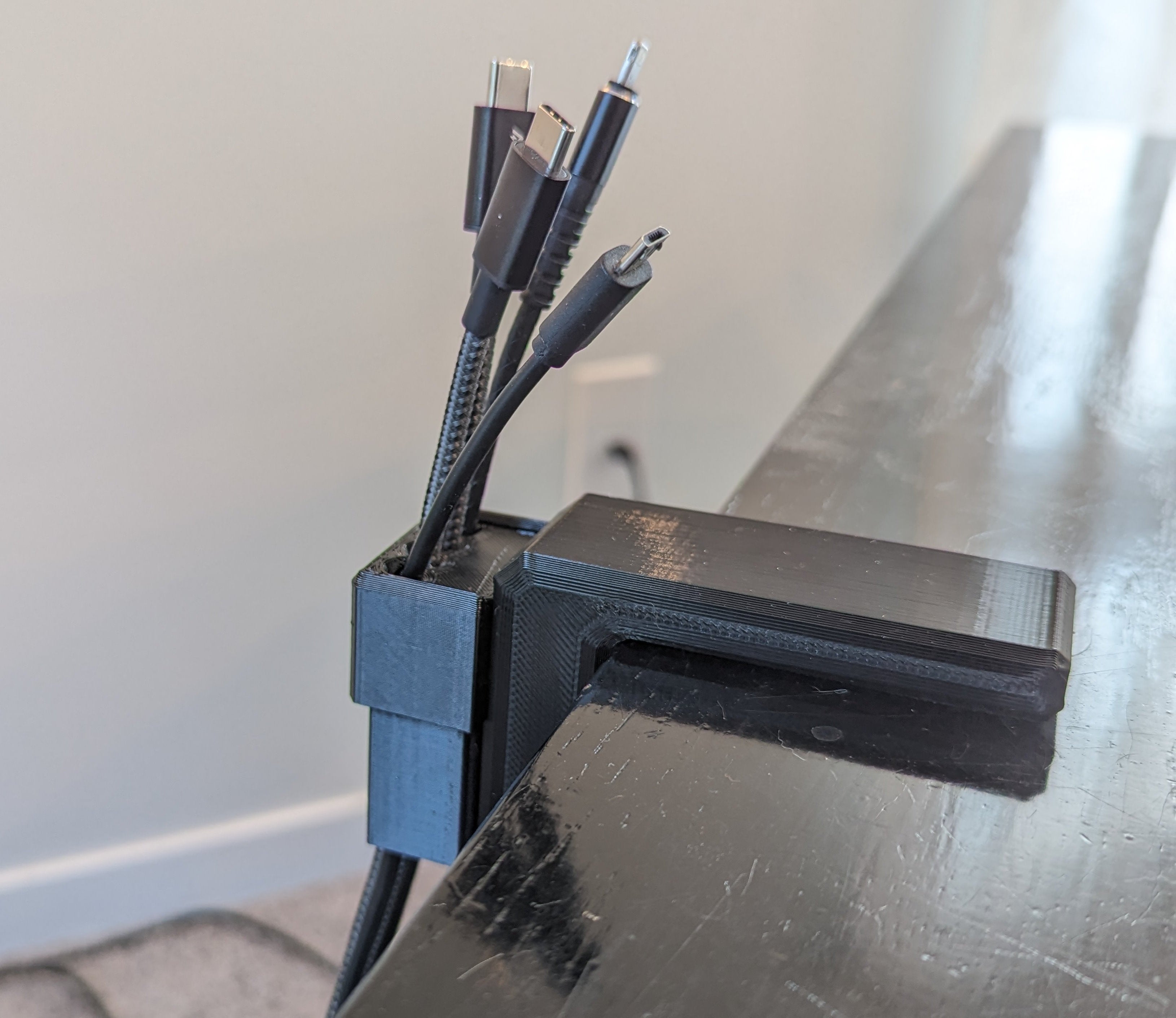 - Minskar kabeltrassel för ett snyggt skrivbord.