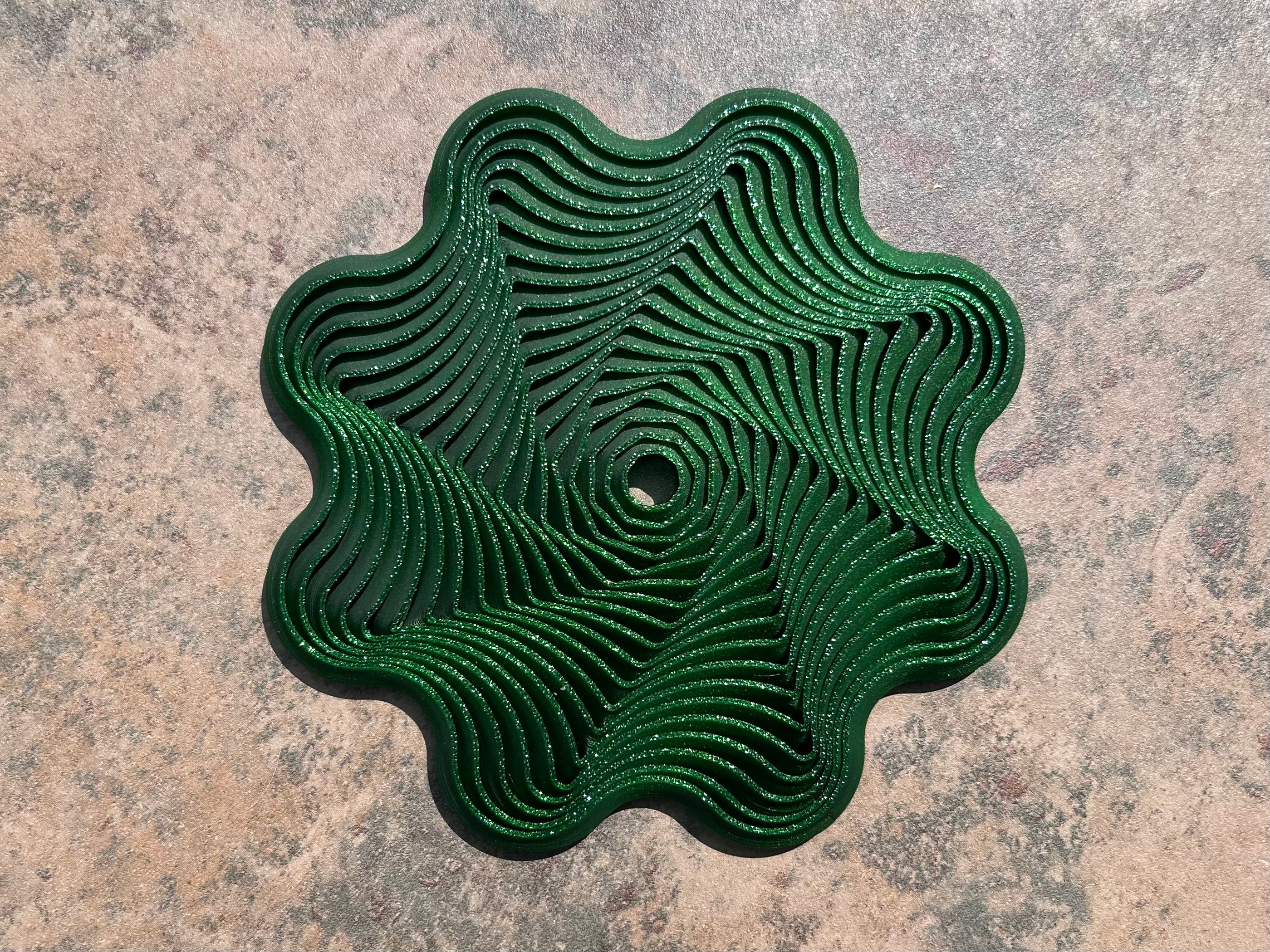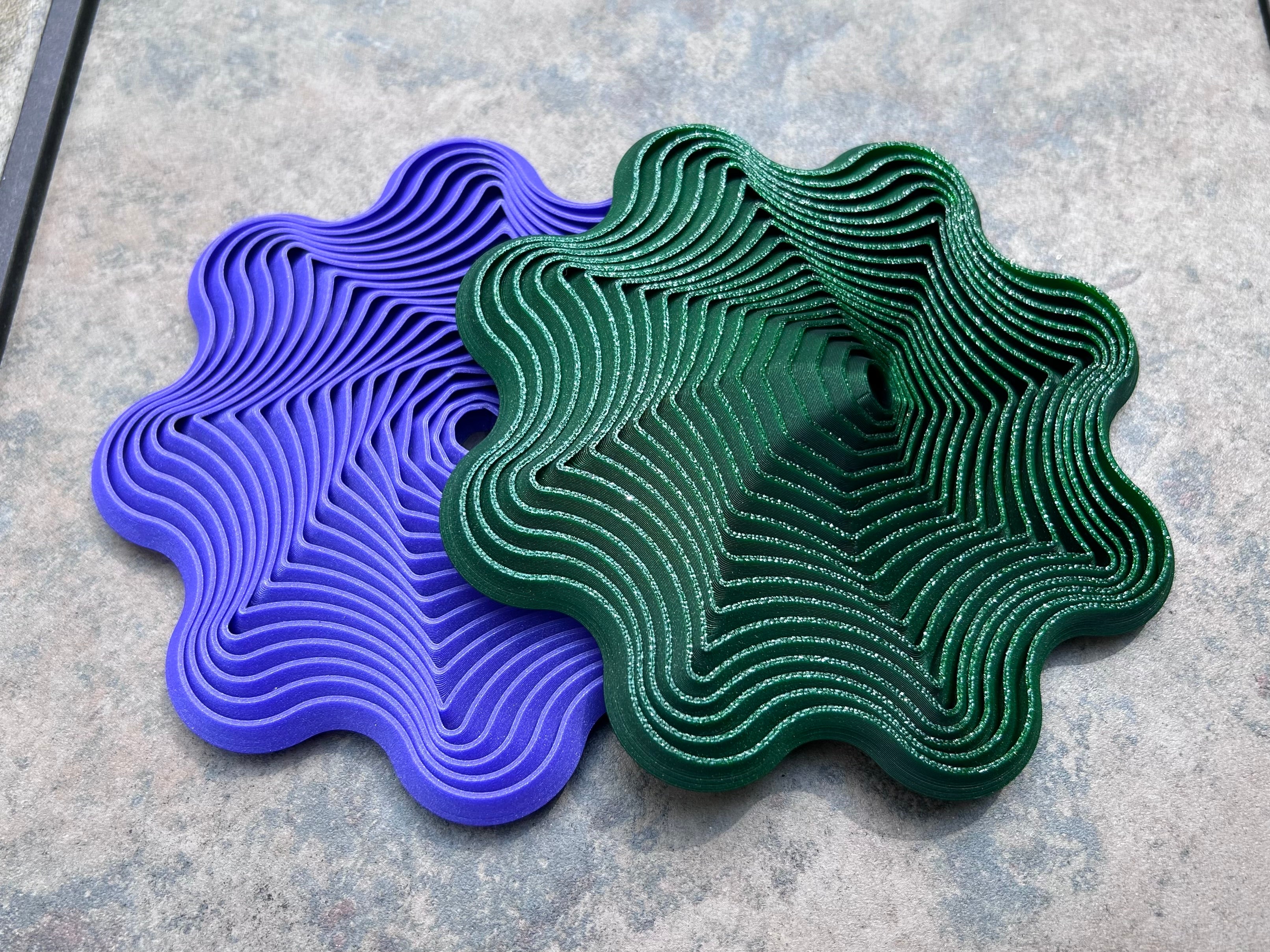 Upplev den lugnande effekten av Wavy Nested Fidget, en fidget-leksak designad med ett unikt och estetiskt tilltalande vågmönster. Denna fidget erbjuder en taktil upplevelse som gradvis förändras från lätt runda vågor på ytterkanten till oktagoner i mitten, vilket gör den både spännande att titta på och att använda.