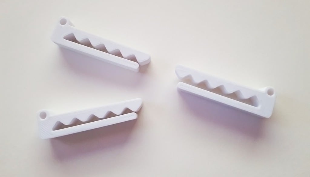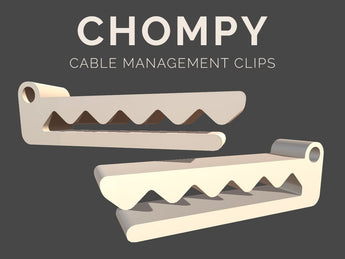 Version 3 av Chompy är optimerad med en något bredare öppning, vilket gör den särskilt lämplig för hantering av kablar i genomsnittlig och standardstorlek. Detta säkerställer enkel och smidig isättning och borttagning av kablar efter behov. Klämman kan enkelt fästas med dubbelhäftande tejp för en snabb och flexibel lösning. För de som vill ha en mer permanent montering finns det också möjlighet att modifiera designen för användning med skruvar.
