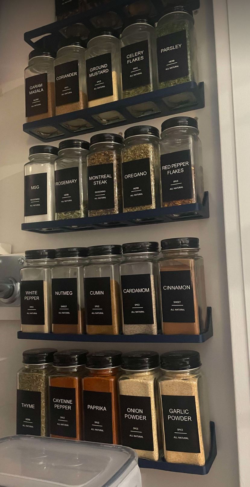 Optimera ditt kök eller skafferi med detta funktionella kryddställ, utformat för att maximera din väggyta. Denna praktiska lösning låter dig organisera dina kryddor på ett tydligt och lättillgängligt sätt. Med detta kryddställ blir det enkelt att hitta rätt ingrediens medan du lagar mat, eftersom dina kryddburkar är synliga och nära till hands. Skapa en mer prydlig och effektiv köksmiljö, med all din kryddförvaring på ett ställe. Ett perfekt tillskott för dig som vill ha ett ordnat och elegant kök.