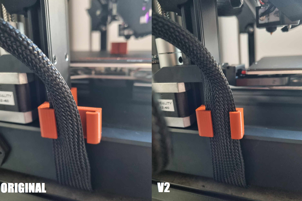 Det nya kabelklämman är 6 mm tätare än originalversionen, vilket säkerställer ett fast kabelgrepp , så att kabeln sitter tätt utan att buta ut. Detta bidrar till en mer strömlinjeformad och säker installation av din skrivare. Dessutom är ramklämman 1 mm bredare, vilket gör det enklare att installera och ta bort hållaren. För de som föredrar en något lösare passform finns det en alternativ version som är 2 mm bredare, vilket ger mer utrymme för kabeln och fungerar som en justerbar kabelklämma .