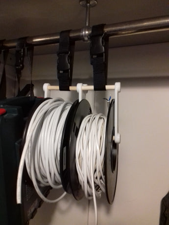 Denna filamentspolhängare är en smart och praktisk lösning som låter dig återanvända tomma filamentspolar för organisering. Den är utformad för att effektivt förvara en mängd olika material som trådar, kablar, snören och garn, och fungerar som en idealisk lösning för att hålla koll på dina snören och kablar. Med denna smarta återanvändning kan du enkelt skapa en mer organiserad arbetsyta och hålla ordning på både hobbytillbehör och elinstallationer. En diskret 2 mm ränna i varje ände bidrar till produktens stabilitet och gör hanteringen av det förvarade materialet enkel.