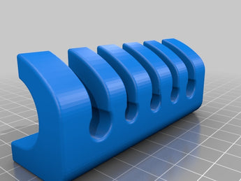Kabelhållaren är utrustad med fem flexibla spår som kan hantera olika kabeltjocklekar. Den innehåller tre spår med en diameter på 5,0 mm och två bredare spår på 7,5 mm, vilket gör att du kan organisera både tunna och något tjockare kablar sida vid sida. Detta säkerställer att du kan anpassa lösningen till dina specifika behov.