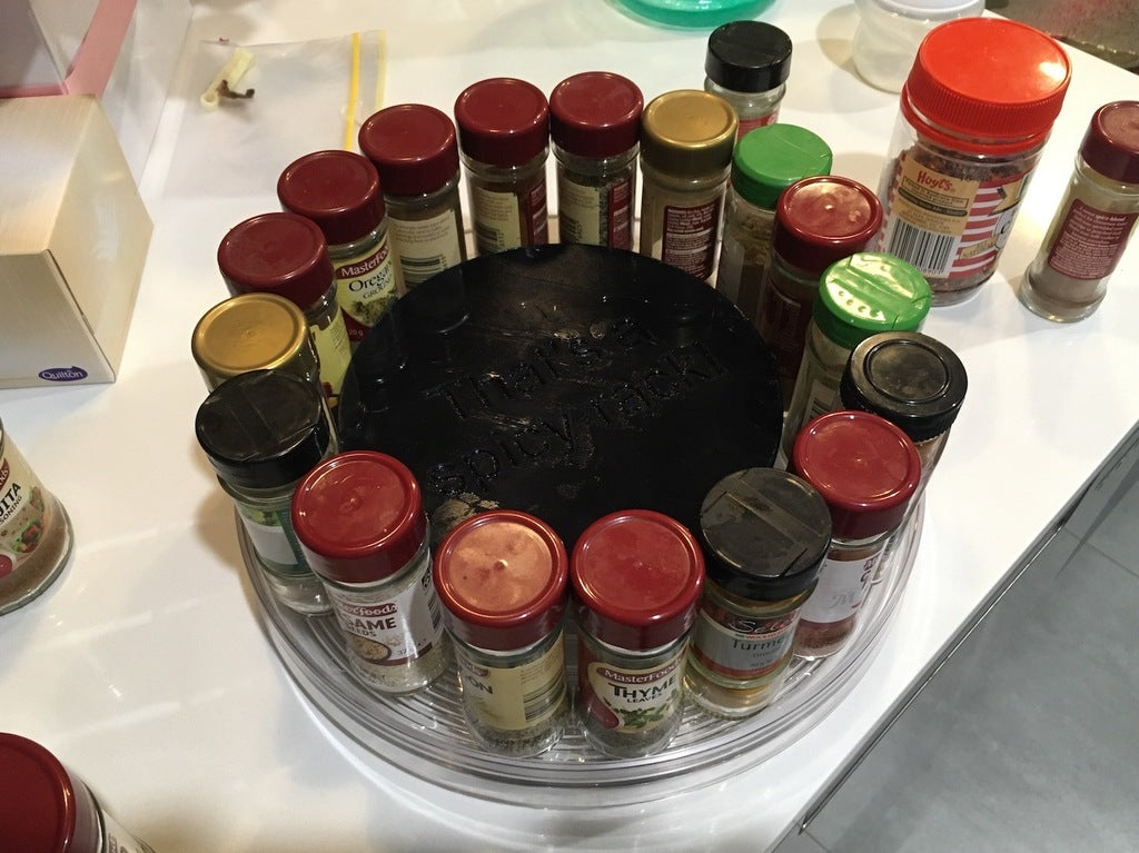 Denna funktionella kryddhylla är utformad för att optimera din kryddförvaring och skapa en bättre översikt i köket. Hyllan placeras centralt i en befintlig Lazy Susan-organisatör och fungerar som en upphöjning som hjälper till att organisera dina kryddor. Den säkerställer att kryddburkarna i den yttre ringen hålls prydligt på plats, samtidigt som den förbättrar synligheten av kryddorna som vanligtvis är gömda i mitten. En praktisk lösning för ditt kryddhylla som gör det enklare att hitta exakt den krydda du behöver.