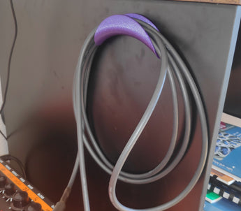 Denna väggmonterade kabelhållare är en praktisk lösning för att hålla ordning på dina gitarrkablar. Den är utformad för att frigöra golv- och bordsyta och hjälper till att hålla dina kablar organiserade och förhindra att de trasslar sig. Kabelhållaren är enkel att montera på väggen med dubbelhäftande tejp, vilket möjliggör snabb och problemfri installation utan behov av verktyg eller borrning. Den är särskilt lämplig för kortare gitarrkablar och erbjuder ett diskret sätt att förvara din utrustning, så att den alltid är redo att användas och skyddad från onödigt slitage.