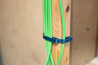 Klämman monteras enkelt genom att de små krokarna på baksidan greppar perforeringarna i hyllan. Denna enkla montering säkerställer att din kabelklämma sitter säkert på plats och effektivt buntar ihop kablarna.